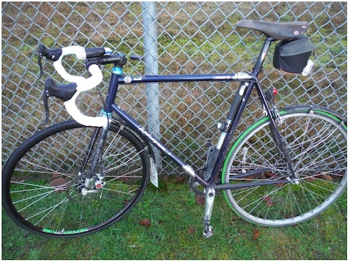 - The front rim is absolutely pristine. In previous years, the front rim would be worn down enough to form longitudinal cracks, or even fail when the tire bead would bend the rim from 100+ psi of tire pressure, allowing the tube to expand and explode. This could be a safety issue. Typically, a rim would last 15-20,000 km before this would happen, but lately I have noticed current rims have started to "bow" outward after only 7,000 km. This suggests that the rim manufacturers are using less material. For the past several years, I've been using a Rodriguez fixed gear bike almost exclusively on the road. The typical summer configuration uses an ENVE carbon fiber fork with Campag Chorus caliper brakes front and rear. In the winter, I typically change out the handlebar/stem and attached brake assembly to Campag Centaur and vintage Record. This past winter, I wanted to experiment with a front disc in order to address the front rim wear problem. The first issue was obtaining a proper disc brake fork. Most authorities are adamant that a fork must be built to specifically handle the loads of a disc brake. They show pictures of broken forks that are bent just above the disc mount. Another issue is that the force of a disc brake tends to move the wheel downward in the dropout. One hears stories of disc brakes causing wheels to eject from forks. Finally (after years) this justifies the use of "lawyer tabs," which I have always filed off on all my forks so that I don't have to mess with the quick release to get the front wheel on or off. The second issue was finding a fork built to handle a disc that had a 367mm axle-crown measurement. This is pretty standard for a road fork, but most aftermarket forks are built for touring or cyclocross, with axle-crown distances of 380 to 400mm. You would think that product managers would make 367mm disc forks readily available for riders wanting to upgrade their road bikes for front disc/rear caliper use. Especially when used with a hydraulic disc, this setup would allay fears of losing brakes entirely if the hydraulic fluid overheats and causes the brake to fade on a long, steep descent; at least you'd still have the rear caliper brake. But no, the only production 367mm disc fork is made by ENVE for a tapered (1 1/8" to 1.5") steerer. Most disc forks are built for cyclocross use and provide plenty of clearance, but they also raise the front of the bike slightly (and mess with the resulting rake/trail). Fortunately, I was able to order a Wound Up carbon disc brake fork, modified with a 367mm axle-crown distance, and with a 45mm rake. The Wound Up disc fork appears to be their standard fork with the attachment of a standard disk brake sleeve (which says a lot about the strength of their standard fork. Wound Up, by the way, is about the only company to make a carbon fiber tandem-certified fork). The fork is ugly as sin, the aluminum crown is still massive and provides just enough clearance to a 23mm tire, and the carbon steerer is reinforced with an aluminum liner so that a standard starfangled nut can be used, but the result is a 650 gram fork (compared to the 350-gram ENVE 2.0. At least, like ENVE, the Wound Up forks are built in Utah, and are not from some unnamed factory in China! The other preparation required was building a new front wheel. I used the SRAM 506 front disc hub as the basis. Since I like to have the outward spokes radiating backwards (with the rotation), I had to build the wheel asymmetrically. The theory is that you want the outward spokes radiating against the forces being exerted next to the spoke flange ("wind-up"), so the drive side of the rear wheel will have the spokes radiating back. Because the rotor is on the left side, the outward spokes must radiate towards the front (against the rotation); thus, the asymmetrical front wheel, which must also be dished. 32 spokes are sufficient; I'm not sure disc hubs with less than 32 holes are commonly available. I typically build my front wheels (for caliper brakes) with 28 spokes (I weigh 170 pounds/78 kilos). Because there is so little stress on the front rim, I have resolved to build a second front disc wheel, but it will have a carbon fiber clincher rim! I was able to obtain compressionless cable housing (highly recommended), and installation of the disc was quick and easy. After mounting the rotor to the hub with the six torx bolts, you install the front wheel in the fork, then LOOSELY attach the disc caliper unit, tighten down the pads against the rotor, and tighten the caliper unit to the fork. This ensures that the pads are properly aligned to the rotor. You then attach the brake cable and adjust the pads so the wheel spins freely, but lever travel is minimal. I didn’t even bother to attach the cable adjuster – its sole purpose is to take out any cable stretching. The instructions are adamant about not using it to adjust the lever travel (other than taking out the initial unproductive part). The lever is a standard Campag carbon fiber with the gearshift internals removed. Lever travel is equivalent to a well-adjusted rim caliper. You then have to seat/wear in the disc pads. This is done by taking the bike down a steep hill and riding the brake for about 10 seconds. My first ride with the disc brake took me down Thermal in Coquitlam in the rain, which requires far more than 10 seconds of braking. I rode only the front brake most of the way down with no problem. At the last stop sign, I put my gloved hand on the rotor, which immediately started smoking! The rotor does get hot! Later in December, when I took the bike to California and rode up and down Mt. Diablo, the rotor had changed to a darker color by the bottom of the descent! Since I installed the disc brake, with very few exceptions all of my braking has been front brake only. This was initially to test the efficiency of the brake, but I was so confident with the result that I just continued to use front brake only. Yes, you do need 