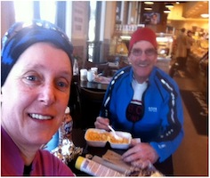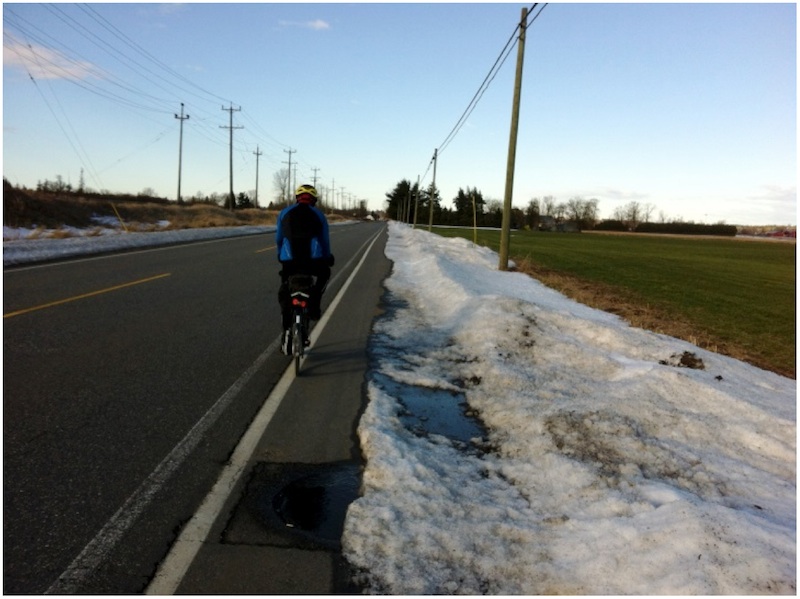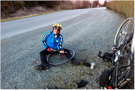 Our Hail Mary February Permanent Permanent #18 (Chilliwack start) 203 km February 28, 2014 12:09 With our monthly permanent streak on the line we had to go, no matter what! I must admit my heart wasn't in it. My last decent night's sleep was Tuesday at a wonderful little boutique hotel (The Casa Platypus) in old town Bogota, Colombia. It was up at 4:30AM (hum, perhaps it wasn't that great of sleep after all), taxi to the airport, 5hr flight to Washington, D.C., 2 ½ hour layover, 4hr flight to Denver, 60 minute layover extended to 2hrs+ due to weather, 3 hr. flight to Vancouver and a 90 minute drive home to Cultus Lake; arrival time 1:30AM ( Total time =24hrs) to over a foot of snow in the driveway. Welcome home! >At least I was physically ready, after 10 ten days of high altitude riding with considerable climbing I felt ready to roll. An aside.... Colombia is a great place to ride, the roads for the most part are as good if not better than many of our secondary roads, the scenery is wonderful, dogs ( and there are lots of them) ignore cyclists and the drivers are incredibly courteous. There were some negotiations as to the start time, I wanted to start extra early (6:30AM) as Sheryl and I have dancing lessons Friday evenings. Karen wanted a later start, we compromised for 7AM. As we had ridden this route numerous times together in the 11 hour time range with very leisurely stops at the controls I was feeling OK about making it to the lessons. The weather forecast for the most part looked promising (low of 3 high of 11), a possibility of rain showers (which didn't materialize) but there was also a call for sustained easterly winds The ride west through Yarrow and, across the Sumas Prairie, past the YYR and along Zero Ave were accompanied by a moderate but steady tailwind. The first sign we had of what was to come was felt when we turned north on 272St. The winds were building, there was a substantial cross wind, but it wasn't too bad as trees and building provided lots of wind breaks. We were expecting a much stronger tailwind when we turned west along River Rd. into Ft. Langley, but it didn't really materialize. After a hearty lunch of M&C, that had just been taken out of the oven, we tuned eastward with some trepidation as the wind had definitely picked up. The ride over the highlands from Ft. Langley towards 264th St. and onto Matsqui Flats was slower than normal, but not all The descent down to Matqui Flats gave us the first real taste of what was to come. I like to see how far I can coast at the bottom of the descent out onto the flats. I went about ¼ of the distance I usually cover. When we turned on to Townshipline Rd. for the 5km straight shot across the flats to River Rd. things got ugly. We usually ride this stretch at a leisurely 25kph, but we were working our butts off doing 12kph. Hum, I wonder what it will be like crossing the Sumas Prairie. We were about to find out! When we reached North Parallel Rd. it was like riding into an invisible wall. From the intersection of Whatcom Rd. and North Parallel Rd. it is approximately 8km to No. 3 Rd... It was one LONG haul. Heads down we pushed forward. My heart rate was way too high, my thighs were burning, my knees were screaming, "we surrender", over the wind Karen was repeatedly muttering, "This is better than being at the dentist.... just!" Is that a mirage in the distance, I must be hallucinating, no it's the Yellow Barn... it will do. We averaged less than 12kph, but in the gusts speeds of 8/9kph was the norm. We were both knackered. Folks at the Barn asked, "Did you just ride across the flats into that wind?". "Yup!" We had seen one rider going the other way; he went by like a low flying jet plane. Karen was getting concerned that we wouldn't finish in time for me to get to my lessons. I also had my doubts, but it was in range until 25km from the finish as we approached Ferry Rd., then this.......^&%)&%* Thanks to a "beginner's" mistake (short stems don't work on deep dish rims), no apparent cause for the flat and that it was also getting dark and colder this was a 25 minute repair job. A second tube and a new tire saw us on our way. The up side was we were still battling the wind and this break provided some desperately needed recovery time. We both commented that we felt energized when we got back on the bikes; besides we were cold and needed to get moving to warm up. During the ride Karen had been in regular contact with Michel, who was at work. He was aware of our wind and flat delays and decided upon returning home from work to ride out to meet us. We met up just before the soon to be reopened Popkum Market. He dutifully rode in the rear position (as per the rules). This worked out well as my rear main rear light had failed and my auxiliary tail lights were not all that bright. We finished in 12:09; I think our slowest time ever for this route.... exhausted. I can't speak for Karen, but was I sore. I still am. So much for the dancing class, there is always next week. Our string of permanents is intact. Mission accomplished.