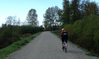 Crossing on the Lougheed and over the Mission bridge was the only questionable section I think. We passed Laith again, this time he had the flat tyre, but he told us to press onwards, so we did. North Parallel road was its usual fun, and we had a good rotation going along it in the wind before crossing the highway, passing the lovely Yellow Barn with thoughts of food and drink, but deciding to head onwards to Ryder lake. In Chilliwack Lucas and I dropped our pace a bit, and as a result of some mis-directing, ended up taking the long, steep climb into Ryder Lake. Thankfully we were excused the transgression, but after doing some of those 15% hills, I'm not sure our legs really excused us. :| Having previewed the roads on the climb, the actual descents proved much easier and rolling back towards Fort Langley was a lovely rest. There were a couple hills in there that I wasn't 100% were needed, but hey- more climbing! :D We met up with Jacques on the Interprovincial Highway and Wells Line which added a nice extra body to our rotation in the wind. We stopped to de-layer and planned to catch up with Jacques, but then as the four of us passed the Birchwood Dairy sign... well, we couldn't resist ice-cream in the sun. So after passing Eric Fergusson back and fourth for maybe the 6th time that day, he watched us turn off in search of dairy delights ahead of him (we had recently just overlapped him after a small turning error in Sumas). Ice cream was good. The 'After Dinner Mint' was pretty tasty, but I'll admit I couldn't taste the orange in the 'Swiss Orange-something' so don't get your hopes up if you try that in the Eventually we set back off to Fort Langley. On one of the climbs into Abbotsford Laith reappeared and joined us for the lovely roads ahead. Partway through, Laith and Lucas disappeared slowly off the back, and we assumed they were chatting and having fun from the sounds we heard, and eventually thought the had passed us, when really Lucas apparently was sick, fending off vomiting, and ended up stopping for Advil, tums and a nap at a grocery store... oops. Some teammates we are! But the three of us - Pete, Tobin and I - were looking forward to a stop in Fort Langley, and after the Lefeuvre descent, noticed that we were on the Spring Series DEVO stage race Time Trial course. This of course meant we had to try some time-trial pacing, so we hammered down until passing Armstrong road at a fair clip. Rolling into Fort Langley the Fort was pretty busy, so we stopped at Wendels and had a good long rest with Lattes, brownies, Carrot Cake, beer and Étienne's new pick-me-up, Bailey's Latte. We stopped for a good 20 minutes enjoying the food and watching Eric, Jeff and Colin I think pass by before eventually setting off just as Barry arrived. After that lovely drink, returning to Vancouver felt like a breeze! I was managing to push the pace to about 38-42km/h with my light on and was pretty pleased with that! The short dyke section up to the Mary Hill was the only slower part, and the rest of the route was super speedy. We almost ran a mini-race/Team Time Trial along the Lougheed section with our 280km legs apparently still holding up, so that was nice (even a few Strava top 10s :D). The last few traffic lights slowing my approach, we arrived spaced out by 20 seconds each to the Knight & Day, happily presenting control cards to Chris and sitting down to await the return of Laith and Lucas, enjoying some hot food & beer. The best brevet yet!