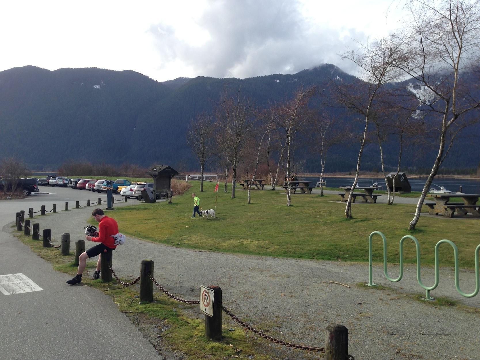 March's Ride Étienne's sent this in a little after the fact (computer problems)... No problem. A time capsule report. Étienne Hossack So maybe choosing to do a 200 the day after a race, and assuming it would be a fast one was probably a little ambitious. As you may or may not have heard at the Spring Social I decided to go out on the Sunday for March's ride, essentially because the races on the following weekend would be missed if I did the Early Bird. I like my races :) So it was also a chance to try my new route that I meant to do in February, only to be precluded by snow. Party in the Parks seemed like a great way to get in some non-major roads but still stay in the Lower Mainland. Having managed to convince Nigel Press and my fellow UBC student Patrick to come, as it was forecasted as the first possibly sunny day in a while, the ride actually looked like it would be pretty fun! We left Sigel's Bagels at a lazier 8:30AM given the hour of sleep loss, and rode through Stanley Park on the way to Deep Cove, briefly slowing to chat with my Escape Velocity teammate who was doing a 'slacker' 1 hour recovery ride. The stretch to Deep cove did threaten rain, but was reasonably pleasant - although it was there when I discovered my hill legs were lacking :) After a brief chocolate-croissant stop at Honey's, we rode up the steep Seymour Parkway bit, up to the Demonstration forest and began the lovely stretch out to the end of the trail and back. It was cool and quiet, we passed only a couple of cyclists and runners the entire time. Possibly my favourite stretch of bike roads anywhere. Then it was off to Belcarra, where Patrick had never been and Nigel and I had not visited for many a year. Belcarra was a nice mix of hills and views, and by this point it was starting to be sunny, so I happily had removed my rain pants and overgloves. We did however miss one small turn and ended up taking the same hills back from Belcarra as we did on the way. Oops! :) Exiting Belcarra we moved up the Heritage Mountain climb which is always gorgeous, if a little slow when the legs aren't in it! We stopped for a bit at the top of the hill, and of course it was only as we rolled away that I noticed my tire was flat. So we briefly stopped to pump it up before heading along David and then down to the Lougheed. Pitt Lake is gorgeous, but the road out there if you know - less so... But after a ride out, brief stop and munchies, we rode back were on our way homewards! The next section was on the lovely infrastructure out to the SFPR, and as always was pretty. Then it was down the road and up and over the Pattullo Bridge. Though with all the recent construction, route-navigator Étienne lead the other two on a fun chase around the bridge. Need to make that clearer next time :) Then it was through to New Westminster where we had a forced stop to look for water, as both Patrick and I were super-parched. We stopped at a stadium, but of course all the indoor and outdoor fountains were off for some reason, so we just awkwardly shuffled into a change room to fill our bottles from the sink. Then it was the home stretch! Down to Marine and along the Kent bikeway, then up the last Cambie hill (though Patrick's legs had taken their vacation by that point - it became slow but steady). Of course the final task was to stuff our jackets full of bagels and ride home amidst the delicious smells. Patrick passed, assuring Nigel and I that he would go home and cook a delicious burger instead. (He later admitted to regretting the cooking plan, and picked up some food cooked by others instead!!) In summary? Favourite 200 so far! Gorgeous, and can't wait to repeat this during a summer month!