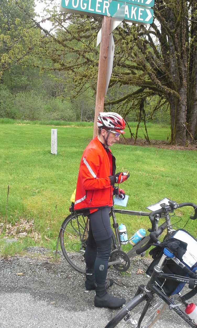 Alex Pope & I headed off on Saturday morning on the pre ride. A different approach to the Queensborough bridge this time should make route finding a little simpler than last summer. I realized as we passed the Cloverdale Fairgrounds it will be a lot more hectic on ride day, the Cloverdale Rodeo falls on the long weekend. Clouds were all above us, but in true fashion there looked to be blue skies in the distance. We made good time to the first controle, the difference I felt almost immediately, spring winds alive over the prairie. I removed the Edison controle, but no fear for pastries, Farm to Market Bakery has opened on Route 11 beside the Rhododendrum Cafe. The next controle at Westside alleviates the traffic through Burlington then its off to the Skagit Highlands. Be careful on the descent down the parkway. There is a stop sign at Rt 538. From here to Concrete there are no services after Clear Lake ( 5 km down the road). The climb to Lake Tyee hopefully gives you a great view of Mt Baker, we saw only clouds. The return will send you through Sedro Woolley for supplies then to the Deming Controle. I doubt the Nooksack Market will be as quiet as it was for us. The final 100k sends you to Mission then the Lougheed for a relatively flat finish.