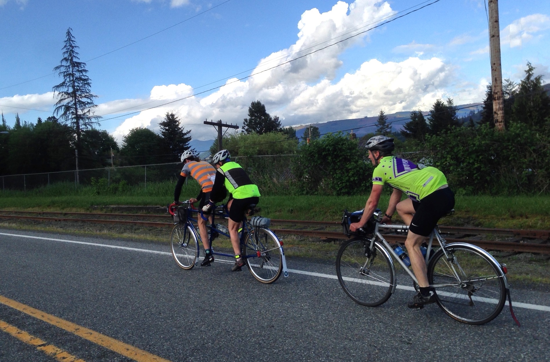 A Frantic First 400 Following Food Fun Featuring Étienne Gallery Here. So I guess I made a couple mistakes on this one. It was my first 400. You live and learn. At the start... oops forgot Canadian money. hehe. But whatever, things are good. Borrow some, and we're off! Now, thinking I'd save money and time, I packed a bunch of food. I mean a bunch. (See below for foodlist and what actually got eaten). This did mean that I FLEW down hills. Wasn't so great on the uphill. But, the first part until the border was mostly drafting tandems, so I wasn't complaining! ? I hit the secret control at the same time as everyone else and Keith F., Chad, and the JohnMalou duo and I rapidly took off after getting our cards stamped by the official (though seemingly underage) checkers! hehe Keith eventually did his Keith pace, and Chad and I followed suit, hoping I guess for a joyous faster 400. Ryan obviously had the same idea and he appeared a couple minutes later after what seemed a heroic bridge effort. I felt a little too out-paced though, and realising the border was coming up, fell off the back to join the tandem train. We reached the border at about exactly the same time. Nice bridge Ryan ? Past the border was when I realised the mistakes I had made. Firstly, in terms of how much stuff I was carrying. Seriously, apart from water I swear I could've done an unsupported 600. Though, who knows, because I might've eaten much more except... Secondly I had had food poisoning on Thursday and spent the entire day cleansing my system, also unable to get rest because of the jackhammers going in the apartment next door during the day. Joy. And then I hadn't had a bowel movement since Thursday, so I had some extra food (4 sandwiches, 2 bowls of cereal and a cucumber in weight :P) within me. And I wasn't able to go the entire ride. Bleh. Normally I suppose that wouldn't have been so killer, but the long, rough section on the South Skagit highway does not bode well with a very intensely packed digestive system. Sigh. Anyway, rewinding, when we were riding along Noon Rd, and I was going my absolute maximum to maintain 33km/h on Chris's wheel, I knew something was up. So I dropped off the back and decided that it would have to be an easy 400. At least the pace turned out to be so. In (Everson?) I made a quick stop to get the cards signed then took off early, knowing I was going to be slow. Soon after the group whizzed by and the only face I saw for several kms was Craig. We navigated through Bellingham together but soonafter started playing a bit of leapfrog on the Chuckanut. Mostly me watching him from a distance. It was cool to watch the Seattle International Randonneurs pass us by on the highway, getting in a few waves and admiring the blue jerseys. Apparently this is a scheduling doosie - but I don't see why we can't plan this dually for some fun in the future! We ran into some again later, at the AM/PM in Sedro-Woolley, where they were flowing along the 9 like ants sensing peanut butter. Finally exiting the Chuckanut (I say finally, but really it is such a lovely hwy) Craig and I joined forces to head to the Shell station, briefly picking up Andrew before he went to a firehall in search of water. We rolled into the shell not too long after the front group had arrived so Craig took off with them and I followed from a distance. I think it didn't take long before Craig realised that the fast pace and his rain pants didn't mix well. The next long section was the Skagit Hwy. As I previously mentioned, it was long. Combined with how I was feeling, I struggled to maintain 20km/h most of the time. For me, I'd call that slow. I had one hilarious moment of stopping for the traffic light on the one-lane section for about 3 or 4 minutes before realising that I could actually see around the corner to the other end. All the signs seemed to indicate this long, one-lane section, but seriously, it was about 200 metres. Hehe. Finally exiting the S Skagit Hwy, I happily stopped at the convenience store for some 'green' juice in hopes of enticing my bowels and had a nice conversation with two cyclists who, upon hearing that I was riding 400kms, remarked that 10miles had tired them out. I shrugged, thanked them for there encouragement and turned up towards Lake Tyee, I'm sure to their amusement. Will. Will. Will Will Will. That hill. Actually it wasn't the end of the world, but it's not like going up the OTHER way couldn't have been bad. Though that would've meant a slight uphill for miles... yeah, probably for the best. Still! We could've, like, not gone up it! Anyway, Lake Tyee seemed pretty cool. Might be worth a visit someday! The road into Lyman after the Baker Lake descent was similarly bumpy, but all-in-all not the worst. After an unsuccessful bathroom visit in Lyman I carried on to Sedro-Woolley and arrived, much to their surprise, after Cheryl, Nigel and Andrew. They were chatting and enjoying themselves with the SIR crew. I informed them of my stomach woes and got the hilarious advice from Cheryl, "You should throw up" So I attempted to down more fruits and veggies, pressing on ahead by myself. Soon though, the tandem train caught up and began to overtake me, so I hung on their tail. Andrew seemed much like a stowaway, wildly swaying about, but never losing their wheel. Amusing ?. We soon caught up to Craig again, who joined the fun train as they pressed on. Sadly at this point my ingrown toenail decided to become super sensitive and every rut in the road was quite jarring. This of course wasn't an issue if I stuck to the centre of the road, but the tandem train was on the edge. I tried keeping up, but 39km/h on one's own isn't exactly easy, and very soon I had semi-blown myself up trying to keep pace and avoid the cracks in the pavement and was once again chugging on alone. But it was only 8kms or so until Deming so I pulled into the lot several minutes after those four, filled up my bottles, got my card signed and off 