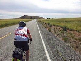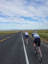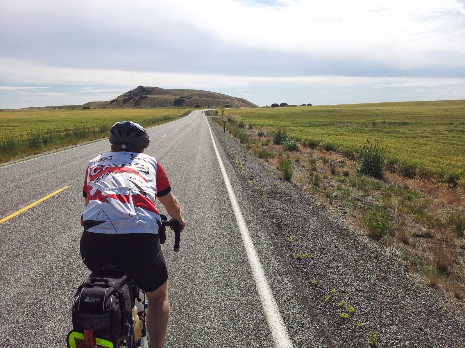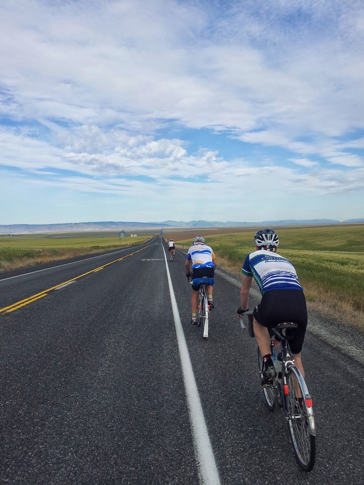 After tapping out the rhythm for most of the sustained climb out of Ephrata and using my aero tuck to full advantage on the subsequent downhill, we began to share pulls heading into the coulee. Every time Mask of Pain took the lead there would be a surge of power that I would not match and then we'd gradually catch back up as the terrain reined him in. When we turned onto Hwy 2 after the coulee, I had to face the (actual) painful memories of riding up #2 with Keith Fraser and Nigel Press in the lead group of Cascade 1200 in 2012. It was here I began to suffer in The Fog of Fatigue alongside rampant truck traffic on what would be the hardest day of my first ultra brevet. This year it was a cruise (only later would I realize it was a different section of road!). The grade was gentle, the cars were few and the company was great. We joined forces with Dave King--once again riding in his familiar white Caps jersey with red and black trim--and powered over the top before cruising down to the first control at Farmer. The control was in the town community hall and a still-functioning disco ball lent an 80's wedding reception vibe to the re-filling of bottles, the acquisition of bananas and the re-application of sun screen. Chris and I set out with Dave across the Columbia plateau for the final time on After silently riding through grain fields dotted with glacial erratics and only Ken bobbing up and down on the horizon to entertain us for about an hour, we finally began to descend. When Dave mentioned that he wanted to get a little lower on the bike 'like you guys' to eke a little more speed out the downhills. Chris and I were hopeful that we'd have more success keeping the group together today. We'd lost Dave several times on downhills the previous day using our aero-tucks (the greatest single thing you can do to improve your speed on the bike) so this was a welcome development for all three of us. I watched him down the first descent; I could see he was making progress but that things were still sub-optimal. I suggested he get his elbows in a bit more and after that he didn't have too much trouble sticking with us. Who needs Bicycling Magazine's 'Descend Like a Pro' tips?!?