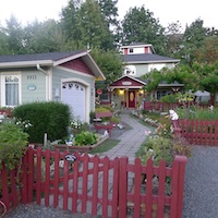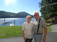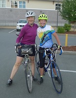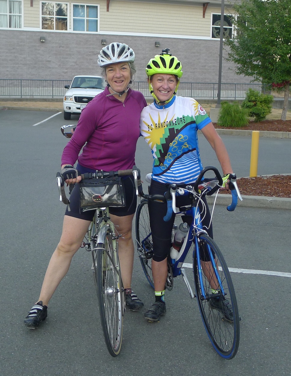 Last Blast of Summer 200 I write this report for two reasons: I want to encourage folks who are new to randonneuring, have been away for a while, or are slow like me. I also want to share my rewards for swallowing pride and getting out there. Thank you to Kristy Lee and her father, Gerry for putting on the Cowichan Valley Explorer. I'd been busy with my B & B all summer, and as I had just one guest that weekend, I looked forward to taking part in the brevet: it would be my summer holiday! Training was limited to a couple 50k rides in the weeks leading up to the big day. Many last-minute guests showed up I woke at 5:30 and, in a first since my introductory brevet in 2011, started on time with the other riders! After just a few gentle rolling hills however, it was just me and the road. "Good morning cows", "Hello pulp mill", "Good morning pajama-clad men getting the Sunday paper". Though born and raised on this island, the route provided beauty and wonder that I never knew existed. Teeny-tiny towns, deep dark beautiful forests, farms and fields that are just beyond the hustle and bustle of the island highway, and lapping waters of the lakeshores filled me with wellness and joy. Some areas provided flashbacks from my youth: I hadn't seen downtown Cowichan Bay since a high school field trip to the marine centre; nor Shawnigan Lake since being at a friends' family cabin there in grade 12. Challenges are always present in a brevet. In packing late, I missed one water bottle and I became desperate for another. Seeing a Health Centre at the Lakeside Village Centre, I took a detour, but they sold nothing that would work in a bottle cage. I got a chuckle from seeing someone on a spin bike in a gym on a Sunday morning, when the world was waiting in all its glory just outside the door. Chuckle aside, I wasted some precious minutes. There were wonderful human moments. I was passed by a young man within the first 20 kilometres, only to realize that he was one of my spin class participants. He and his new bride had moved to Crofton 2 weeks previously, and it was funny to bump into such a random acquaintance on a quiet Sunday morning. I appreciated Gerry's encouragement at the cafe at Shawnigan Lake, and was grateful that he didn't mind giving up his precious Sunday for a bunch of strangers that happen to like riding bikes. Had he not been there, my ride would not have received a morale boost. At Glenora, the store clerk was one of the prettiest girls I have ever seen, and, as I was on time for meeting my goal of under 12 hours, I stocked up on some weird food that I would never eat at home, and chatted with her. She was doing school homework on her laptop, because this was her grade 12 year. Though the teacher's strike was unsettling, she wanted to make sure she'd have a life after grad. In the few minutes that I had, I encouraged her. I also felt very grateful for a bottle would fit in my bottle cage, and whatever it is that they put in pink Gatorade. I thought that taking in nutrients would make me faster from Glenora, but then, I started getting slow and tired. It was hot, there was a steady ascent up North Cowichan Road, and my hot foot started activating. The fast people started coming at me from the other direction. Ken said "Hi Lorraine!", Graham said "Lorraaaaiiine!"", Melissa said "Go Lorraine!", Mark Ford said "Don't Give Up! Keep Going! Good Luck!", and shortly thereafter, I lost it. I wondered what in the world I was doing on my summer vacation. The last few weeks had seen me with a tight chest which I knew was from a stressful workload. Why wasn't I laying in the backyard reading a book? People who do not train regularly should not be on a ride I told myself. Why don't I give up this tomfoolery and go home.? Stopping to rub my stockinged foot at the side of the road, Cheryl, Nigel and Sue came toward me to check in. "Are you okay?" "You're famous" "Don't worry, hot foot is normal" and so on. Best of all they said "Kristy is waiting for you at the last control". I replied "What? Why?", and Sue said "She wants to ride with you. She wants to sing with you on the way in". I didn't realize it at the time, but it was an extremely kind and inventive way of saying that someone feels that you could do with some moral support and a friend to ride with. I got back on the bike and carried on. Not investigating the route sheet before the ride, I had no idea that I'd be passing my aunt and uncle's place on Cowichan Lake. I asked myself, "Do I go down and say hello when Kristy Lee is waiting? That would be rude to make her wait" My Sorry Kristy Lee. I ditched my bike, took off my hot-foot-inducing shoes, and ran down the steep vertical driveway. After tapping on the door, I knew my decision was the right one. I saw a big smile from Norris...."Whaddya doin' here?" "Well, I'm in the middle of a ride, and I have no time, but I wanted to say hello, and thank you for the nice summers, and we need to take pictures quickly." Phyllis noticed my empty Gatorade bottle and filled it up with ice cubes and water. We took turns posing on the porch, and a few hugs later, I ran back up the hill to get on the bike. I was refreshed, and my pace picked up. Kristy Lee was waiting. At the 150km.control, there she was, the hostess with the mostest. I feared being berated for being slow, or having her say "Come on then, I've been waiting, let's go!" as some people would do, but Kristy Lee was very kind and caring. We got acquainted, I re-fuelled, and we hopped