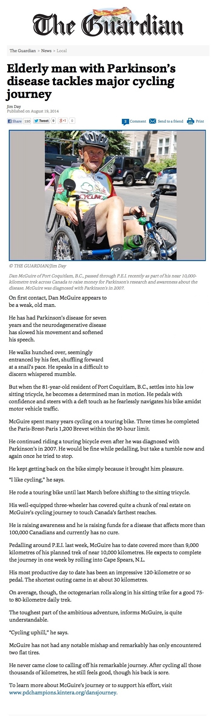 Dan McGuire Continues Cross Canada Journey Dan Mcguire is one of the original four BC (and Canadian) Randonneurs who rode Paris-Brest-Paris in 1979. He was the first Canadian to complete PBP three times. His Cross Canada Journey began in 2013 (Dan McGuire's Amazing Journey). It looks like he continued the journey and did the remainder in 2014. This article is from last summer, August 19, 2014. Thanks to Keith Fletcher for finding this article and passing it along. EF