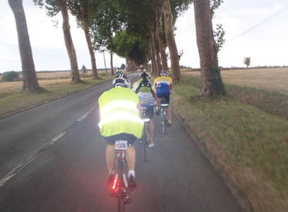 PBP Story "He went to Paris, looking for answers to questions that bothered him so" (Jimmy Buffet) "Lately it occurs to me what a long, strange trip it's been" (Grateful Dead) "It's great to be a part of something so good that's lasted so long" (Nitty Gritty Dirt Band) I first learned about PBP in 2001 from the BC Randonneurs brochure, but I had no idea at the time that it was something I was capable of. I figured it was only for elite cyclists. It wasn't until I rode my first 600 km in 2003 that I realized I had not only qualified, but that people who had struggled far more than I to finish that 600 were on their way. Although there was no way it could happen that year (no money, no passport), the seed was irrevocably planted. I also qualified in 2007. By then I had a passport, but the funds were still lacking. I faithfully bought lottery tickets until entries closed. I made plans to go in 2011, but before the spring series was over and I had qualified a third time, I had decided I still couldn't afford to go. At that time I started a PBP 2015 fund. This was really going to happen. Looking back now, I believe that if I had gone in 2003 or 2007 I would have been unlikely to finish. Since none of the jumble of memories of the ride fall into any kind of logical sequence I thought that, instead of a long, detailed ride story, I would just share the standout memories and impressions in whatever order they come to me. Here goes: The long, long lines for the bike inspection and package pick ups were a great experience. Most riders were wearing their national or club jerseys, which made it easy to spot old friends. I've never seen people waiting in a long line so happy to do so- I heard not a word of complaint. Ron and I had a language limited conversation with an Italian gentleman who was sitting on the balcony of the motel shaving his legs- not something most randonneurs bother with. When the ride actually started the emotion was overwhelming. Riding through the streets lined with cheering crowds brought first goosebumps, then almost tears. This must be what it's like for riders getting their first taste of the Tour de France. I felt proud to be wearing the red and white Canada jersey. It became obvious that there are many different approaches to this ride. A small group of Philippine riders who had apparently missed their start time started half an hour late with our group. One of them had a boom box on his rear rack, which was playing loud music when we passed them a few kms in. I saw one rider on a coaster brake single speed, wearing denim cut offs. Tough, foolish, or both? It was fun to see the elliptigos, the tricycles and tandem trike, all the velomobiles and the antique bikes. The French drivers are fantastic. They waited patiently until it was safe to pass, then gave us lots of room. I saw a number of really dangerous moves by cyclists, but none by drivers. I never felt threatened. Judging by odour, every large truck, particularly after dark, seemed to be hauling pigs I had chosen the first wave of the 90 hour group for my start time, to avoid long lines at controls. It worked flawlessly, and I never had to wait more than a couple of minutes for anything. I enjoyed riding the first hour or so with Michael Tilitzky, until suddenly he wasn't there. Not sure if he slowed or I sped up. Later I rode in a group of about a dozen riders from at least five different countries. A strong Swiss? rider had wordlessly assumed leadership of the group. Some riders dropped off the back, to be replaced by new riders we overtook, until they too fell off the pace. I managed to assemble my bike with the saddle a bit too low, and by mid morning of the second day I had a really sore left knee. By the time I figured out the problem and fixed it, the damage was done and it plagued me for the remainder of the ride, compounded by the fact that I had used the big gears too much early in the ride. The up side of this was that whenever I wanted to partake of the local hospitality (crepes, soup and/or coffee at the roadside), I simply did so. Any time not pedaling made the knee feel better, and I was unconcerned about my finish time. I modified my original plan of sleeps at St. Nicolas and Quedillac en route when I figured out that it would have me riding through both nights (although it was fun to be riding in the dark through some seemingly deserted village, only to hear clapping and shouts of Allez! from unseen spectators). Instead I continued to Brest for my first sleep, arriving at dusk for a beautiful sunset. The dorm I was in had only two beds, and was pretty quiet- until they came in for my room mates wake up call. I just got back to sleep and they brought in my new room mate. Now wide awake, I left after only two of my planned three hours sleep. I consumed huge quantities of food at the controls- pasta, croissants, pain au chocolat, yogurt etc. I also enjoyed the availability of beer at the controls. Anything for more calories. Beer caps in France do not twist off, no matter how many times you twist them round and round. The Overstims table at most controls were selling energy cakes- sometimes caramel, sometimes chocolate chip, sometimes both, that were an excellent supplement between controls. I felt bad later, reading some peoples ride reports, when they talked about the controls having run out of food. That was my fault! One of the best things I did was to take a little nylon shopping bag in my jersey pocket. It folds up to the size of a Clif bar (and probably tastes better). I used it to carry my water bottles and food purchase in and out of controls without juggling, and to carry clothing and overnight stuff to the showers and dortoirs. Coming out of Brest, I kept thinking I must be off route, expecting to see the bridge, not realizing we took a different road out of town. It wasn't until I reached the crepe stand at the top, where I saw a very sleepy Eric Larsen, that I was totally confident I was on