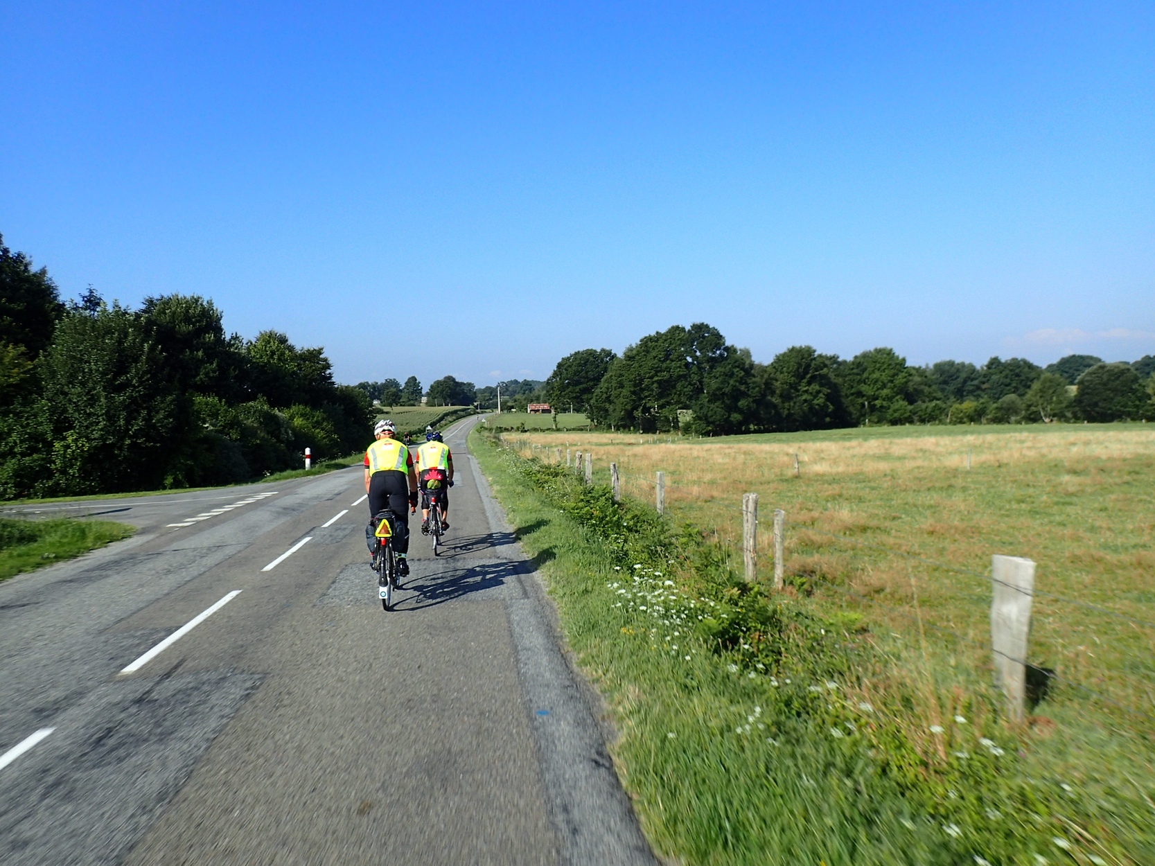 • SLEEP or lack of, was the only thing for me that could have made this ride better. We rode at a pace that put us directly in the middle of "bulge" of riders. When we got to our planned sleep stop at St NICOLAS DU PELEM @ 493.5 we found long lines and no beds available. So we joined other riders on the floor in cafeteria for a sleep of sorts that was less than restful... I calculate that from the time I woke up Sunday till sleeping again at the apartment in Paris I slept for 5 hours give or take in 100 hours of being awake. Those who rode faster would have had a different experience but the additional 1000 riders this time also made a difference.