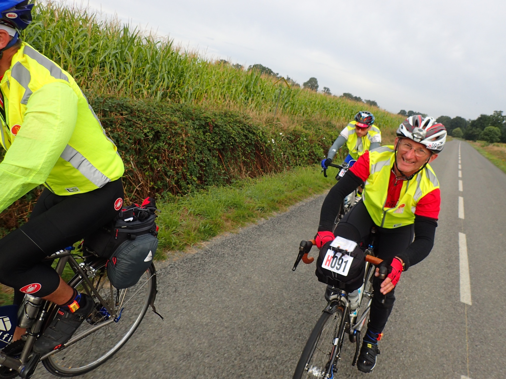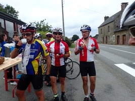 Jim's PBP experience... This story really starts back in December of 2014, when Sam Whittingham, the world renowned bike builder of Naked Bikes, agreed to have a new Naked bike ready for both Graham Fishlock and I. And with that promise it was decided that we, along with Philip Lennox who already had his new Naked Bike, would ride the 18th edition of PBP together as "team Naked". The three of us have enjoyed a good riding relationship that has developed into a strong friendship based on many miles ridden together, including the Van Isle 1200, a number of full series, some Hell Week events and a 1000 k ride as well. So it was that we looked forward and trained for PBP 2015... and waited for our bikes from Sam. As a runner, there is a rule that I follow...never try anything new on race day...gear, food, nothing new....it must all be tested well before on training runs...but in the case of PBP I broke that rule in a big way.... On July 25 Graham and I picked up our new Naked bikes from Sam. I was leaving for France on Aug 9th and Graham a few days later… and so I only had the opportunity to put a measly And so it was that on the night of Aug 5th I basically took apart my brand new bike and fit it into its suitcase ready to fly. So many questions were left unanswered in my mind at this point. I suppose it was "faith" in the ability of Sam and his excellent reputation, as well as the good reports from my friend Philip who already had tested his Naked over the last year, that allowed me to do this thing...take a brand new bike to a ride in France...PBP....that would test both machine and man over 1235 kms and 38 000 feet of climbing. I now know what is meant by "range anxiety" as experienced by those buyers of electric cars...I had a similar feeling because I had never done a long continuous ride with the Di2 electronic shifting installed on my bike. I had many reports from Sam, Philip and others that said it "should be fine" for the 1200 kms but no proof that MY Di2 would be fine...What if the battery from factory was a dud or wiring was not quite perfect.... If you are considering Di2...have no fear....it easily accomplished the task at hand...In fact my battery indicator after the ride said I still had 25 % of the battery left...and it was a hilly ride so I shifted frequently... Besides range anxiety other things on a new bike that could go wrong are numerous...newly built wheels have let many a rider down when a spoke breaks; And all the other electronics on my bike including the generator hub and usb charger...etc etc... When travelling with my bike to France minimizing any chance of damage or the bike getting lost was paramount. We had really great service from Air Transat in 2011 and so chose them again... direct flight from Vancouver to CDG in Paris. The bike goes in on the oversized luggage but always comes out on the regular belt as the S&S hard case gives no indication that it's a bike. We were heading to Normandy for few days before the ride so stored the bike and some extra bags at Blue Marble in Paris. After a great time visiting the D-Day landing beaches and touring Normandy, finally on Friday we arrived at our apartment in Paris. In 2011 we learned that the best train station from Paris to Saint-Quentin-en-Yvelines was Gare Montparnasse. So this time we stayed relatively close by in a district close to the Le Louvre (less than 5km cycle). Opening the bike box for the first time is always a bit nerve racking... and more so since I really had very little time to get to know my new bike. All was good and the bike had travelled well. Assembly took time especially because of the wiring for the lights usb charger etc…but eventually all was in order and ready for Saturday and bike check. The event: First thing was Bike check and package pick up on Saturday Aug 15. We cycled from our apartment navigating the cobbles on round about by the famed Louver ... and found From the Gare Saint-Quentin-en-Yvelines, it was easy to navigate to the Velodrome as signs were plentiful. We found Graham who was finished already. After the bike check and package pick up was done we stayed around for the Canada Picture and then headed back to Paris to pack the bike and get ready for the ride. I slept well and awoke around 9am Sunday morning. Our family was coming out to see us off but we left earlier as we had paid for the lunch offered during registration. Graham met us and we had a nice lunch... PBP organizers did a stellar job this year with the start. When you signed up you chose a start time. The number you were issued reflected that time and so like in many of the half marathons I have run they placed you in a corral of that time. We started at 1745 in H group. We waved goodbye to our family and began the 1235 km journey. I was worried about the very dark clouds gathering, but to no avail. We headed the opposite direction and except for the last 60km experienced no rain. Sun was abundant and winds were minimal. Nights had some fog and temperatures did dip to as low as 4 C... weather certainly was not a negative factor for this edition of PBP. The ride can be seen in the pictures I took...