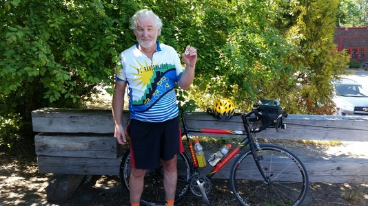 ![]() Larry working the registration table at the 2012 Fall Flatlander. (Keith Fletcher on the right.) Photo: Craig Premack Larry Voth Dies at 68 Larry Voth BC Randonneurs Member #793 _________________________ Selected from e mail messages from Ron Stewart and Allison Voth (Larry's daughter): Hi Ron, I am writing to let you know my dad Larry passed away yesterday Nov 14, on his 68th birthday. He died in his sleep. Very unexpected as he was in good health. We were supposed to go to cirque du soleil yesterday. Please let the Randonneurs know and soon as we have made arrangements for a service I will let you know when it is so anyone can come pay respects. He was a good man. His last mileage log entry for his Marinoni is 93,000 kms. His bike kept him going in life and I always admired his endurance. Allison Voth _________________________ from Ron Stewart to Allison: ....I have not seen Larry since we went to the Island to ride around Shawnigan Lake on a spectacular day in June - just around the time you were wrapping up your Customs training, I think. In total we rode about 1600 km together, and they were all good rides. I owe Larry a huge debt of gratitude for helping me to get fit enough to finish brevets of up to 600 km... _________________________ from Ron to the BC Randonneurs discussion list: Larry's first ride with the club was a 200 to Williams Lake in September 1999. In the early days he rode a mountain bike. His fastest 200 was an 8:30 Flatlander in 2005. He completed Super Randonneur series in 2001, 2002, 2004 and 2006. He did fleches and traces. His final brevet total is over 22,000 km. Larry was a good friend to me, and my first and most important mentor in our sport. We rode together about 1600 km, starting with the preride for the 2012 Flatlander. Our last rides, and Larry's last club events, were a 200 km permanent in February, and the 100 km Cowichan Populaire in June this year. My friend Larry was a modest man who lived a modest life. He spent a great deal of time with his adult children, and often spoke of them when we rode together. I am going to miss him. ![]() Larry in June 2015