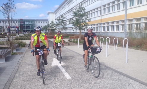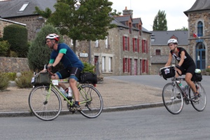 This year, the ride started in waves leaving every 15 minutes from the National Velodrome in St-Quentin-en-Yvelines (about an hour outside of Paris proper). We arrived about an hour before our start time of 6:15pm (part of the 'K' group, which was the 5th wave of about 400 riders who were committed to finishing in under 90 hours and which left 1 hour after the first 90-hour group). After lining up for awhile, we were corralled into a holding pen, and then waited as the waves in front of us departed. As our start time approached, we were moved up to the starting line, while a man The first stretch of PBP wound its way through the commercial centre of St-Quentin. It was fun to ride in such a big pack, and there was a real parade atmosphere, with the streets lined with cheering spectators and children wanting high-fives. Everything was off to a fabulous start it seemed and we were both having fun. Until... At about the 10km mark, we were leaving the first small village along the route and coasting down a small hill when all of a sudden Dave's gears started skipping and his chain was no longer moving in time with his pedal strokes. We pulled off the road to investigate. After a bit of looking at the gears and the derailleur, Dave discovered that the rear cassette freewheel was not spinning, and was completely jammed. Even with force it wouldn't move. This was not the kind of problem that is easily fixed at the side of the road without special tools. Half an hour into our big ride, and it looked like it all might end suddenly due to a mechanical problem! After realizing we weren't going to be able to fix the cassette, we decided that the best thing to do was ride the 10 km back to the velodrome where we knew mechanics were stationed helping tune up riders' bikes. If the problem could be fixed quickly, we figured we could get back on the road. Fortunately, Dave was able to limp his bike along (it rode like a fixed gear bike, only with a derailleur) as long as he kept constant tension on the chain. A passing by cyclist discovered our plight and helped guide us back to the velodrome using a more direct route and avoiding the oncoming cyclists that had started after us. Back at the velodrome, we found our way through the cyclists who were still waiting for their waves to start. We explained the problem to the mechanics (one joked, "you are riding a fixie?"). They got to work on the wheel right away but they had great difficulty getting the cassette off. The mechanics were giving each other glances that suggested that this didn't look good. Once the cassette was off, they started pulling bearings out of the freewheel, sharing more of the "not good" glances with each other. It really wasn't looking good so Holland enquired whether it might just be faster to buy a replacement wheel. They agreed that would be the best plan and Dave spent 200 euros without a second thought. The mechanics quickly swapped over his cassette and tire, and then got the gearing and brakes tuned to the new wheel. And we were back on the road! We did some cyclocross riding across some grass to skirt the group that was waiting to leave (so as not to cross the timing mat accidentally again) and started back on the route. We had lost about an hour and a half getting the problem sorted, but since the first control we had to check in at was 200km into the ride, it was far enough to be able to catch up so that we weren't at risk of running out of time. But we knew we couldn't exactly dawdle. To give you a sense of how far back we were at this point, we'd originally started with the K group but we were now riding alongside Rs and Ss. But at least we were moving towards Brest and had people to draft behind as the sun set and we started riding through the night. It was a surreal experience, riding at night with so many others - a trail of red taillights stretching as far as the eye could see. Around 5 or 6 in the morning, we arrived at the first control in Vilaines la Juhel. Inside was quasi-chaos with just as many riders crashed out on the floor as lined up for breakfasts of cafés au And then off we went again, but now it was light. A long day of riding and tiredness from our effort to "catch up" convinced us to sleep at Loudeac, even though our arrival there was just before 9pm. We immediately paid for 2 sleeping spaces (4 euros each) and set the alarm for 12:30am - a short nap would substitute for a good night's sleep. Unfortunately, Holland didn't sleep, due to noise and the cold temperature and an afternoon espresso, but Dave was out cold. Starting riding in the middle of the night is hard, particularly if you don't start with coffee. We were sleepy but the cold, foggy weather convinced us to keep riding rather than nap at the side of the After the chaos of the Carhaix control, a crossroads for riders coming and going in both directions and a popular sleep spot, we were closing in on Brest. There was some climbing involved but we kept the pressure on and passed many riders, rewarded for our efforts with some amazing views. We reached Brest just before noon and did some grocery shopping on our way to the control that marked the halfway point of the ride (~615km). It was exciting to be in Brest but we knew we had a long, hilly haul back to Carhaix so we couldn't linger. As we were leaving the control, Graham, Jim, and Phil suddenly appeared (and then disappeared to find lunch). ![]() Philip, Graham and Holland leaving Brest We hit Carhaix for the second time around 4pm (our first visit had been around 5am) and realized that we'd be overnighting in Loudeac again, but arriving a bit later this time. In Loudeac, we used our previous experience as a reason to request beds at the far end of the gymnasium turned dormitory to avoid the noise of riders coming and going at all hours. It worked well and we each got 5 hours of much-needed sleep. We left Loudeac for the second time around 2am. It was a foggy morning again, and many riders cou