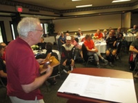 ![]() Manfred (left) with Ron Himschoot Photos: Eric Fergusson Manfred Receives 100,000 km Award Manfred Kuchenmuller passed the 100,000 km event distance milestone on the "Station to Station 200", the 2016 Lower Mainland spring 200 on April 16. Manfred is a long time BC Randonneur. He is member number 175 and he rode his first brevet in 1987. The award recognizes event distance including all Audax Club Parisien sanctioned brevets and Flèches, as well as Randonneur Mondiaux brevets. The award does not include Manfred's impressive 7843 km in BCR permanents event distance, a local program that began in 2008. Manfred is the fourth rider to receive the 100,000 km award. Awarding the plaque to Manfred at the AGM was the third rider, Ron Himschoot. Eric Fergusson (me), was the second. The three of us are pictured in photo on the right below. The first rider to reach 100,000 km was Ken Bonner. Ken is now comfortably over 200,000 km in ACP and RM event distance.