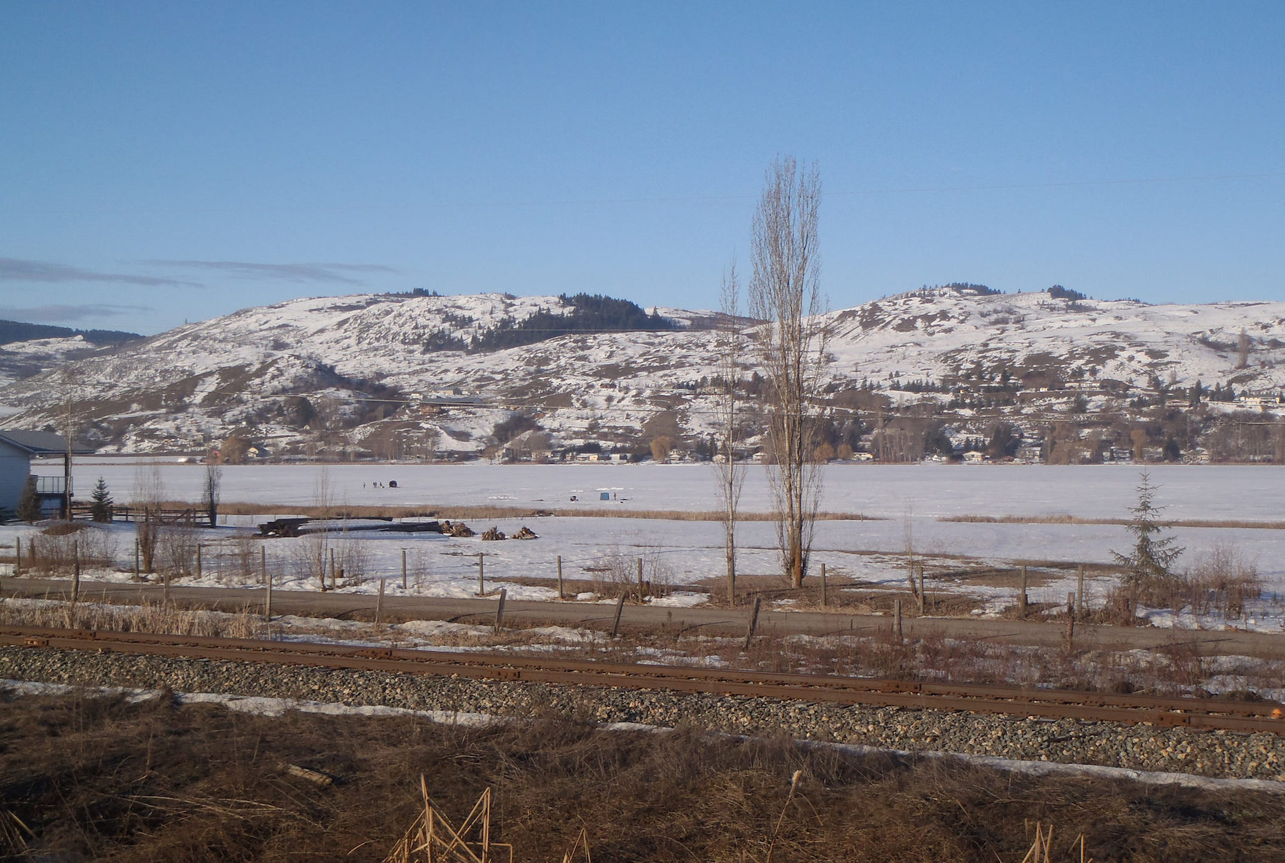 Big Chills, Big Hills, Bighorns and a New Personal Record Time was running out if I wanted to keep mt BC 12 string going beyond 1, so it was February 25 or nothing. I chose to do Jeff Mudrakoff's Kelowna-Enderby route, modified for an Enderby start. I had been wanting to try this route as there were sections I had not ridden for many years, as well as some I had never ridden. The weather forecast was iffy at best: 40% chance of flurries for Kelowna, 60% for Vernon, lows around -8, highs around +1. I didn't want to ride the Surly with the studded tires, but was nervous about icy patches, so at Susan's suggestion I had moved the studded tires to the Trek 920. Best thing I could have done (apart from staying warm at home). I got up and checked environment Canada and Drive BC highway cams for Kelowna and Armstrong- clear roads, temperature of -7. Current temperature at home: -4.5. Let's give it a go. I started at Sutherland's Bakery in Enderby, with clear skies and the thermometer at the gas station showing -9. Remembering the last long ride I did at this temperature, I used two insulated water bottles, plus travel mug full of hot coffee that fits nicely into a bottle cage. It was a chilly but pleasant ride to Vernon, and eventually the sun came up and started to warm things a bit. A few people were ice fishing on Swan Lake. Looking at the route, it's obvious Jeff made a real effort to keep it off highways as much as possible. He made no effort to keep it away from hills. Jeff is tough. He would have even loved the weather, which would possibly have had him wear long sleeves. I was wearing four layers, two of them wool. So, up out of Vernon I went, up Commonage road, climbing waaay higher than I would have on the highway. By the time I got to Winfield (via the Hilly east side of Wood Lake), it was necessary to swap the lobster mitts for fleece gloves. Just as well, as the lobsters made opening food and eating impossible, and removing them meant stopping, then fighting wet soggy hands back into wet, soggy mitts. One place where it would have been better to stay on the highway was Glenmore road. It used to be a nice ride, but road improvements have not kept up with development. There is no shoulder for the first half, and Kelowna drivers pass whether there is room or not. It seems almost as busy as the highway. Once into Kelowna, Jeff used the trail along Mission Creek. I'm sure it's a nice ride in the spring and summer, but today it was (depending on whether it was in the shade or sun) alternately icy and muddy. Glad I had those studded tires. It was the weekend of the Hypothermic Half Marathon, so I was constantly passing muddy runners. Fortunately I had a bell on. Some didn't hear it, or pretended not to. I'm pretty sure I controlled at the wrong Starbucks in Kelowna, due to brain fade. I was way behind schedule, and pretty much spent, with a lot of climbing still to go. A sandwich and a coffee (to go) perked me up a bit, and I crossed the bridge to Westside Road. It was starting to cloud up a bit but I wasn't worried- yet. I even was able to remove my jacket for a while. Just past Bear Creek Park I saw the first of two herds of Bighorn sheep (with disappointingly small horns). Later I saw another smaller herd, but with much more impressive headgear. Quite a few deer were about too. I was getting slower and slower, and later and later. Chocolate milk and Coke from the Little Kingdom Store helped a bit, but I couldn't get the anticipated climbs of Schubert and Lansdowne out of my mind. Approaching Armstrong, the weather was looking uglier by the minute. Climbing Schubert, I glanced at my GPS- 6 kmh?!! It was starting to snow. I had never ridden Gulch Road. It's gravel, and as the name implies, it drops down into a steep gully, then climbs up the other side. During said climb, I was so slow that my GPS thought I had stopped and auto-paused. The snow was starting to build up on the road. Onto Lansdowne, and another 6 kmh climb, but I knew it was the last one. The Canyon Road descent had a skiff of snow on the top half, once more making me grateful for the studded tires. The thermometer in the middle of Enderby said -1. I rolled into Sutherlands Bakery after 10 hrs, 57 minutes, making this my slowest 200 km ever by 12 minutes, with exactly 10 hours on the bike. Unlike my other slow 200s, this one did not include a stop at a pub, or 42 bonus kms. I was just slow, physically unprepared for the toll the cold and climbing would take. I want to try this route again later in the season, when it should be easier.