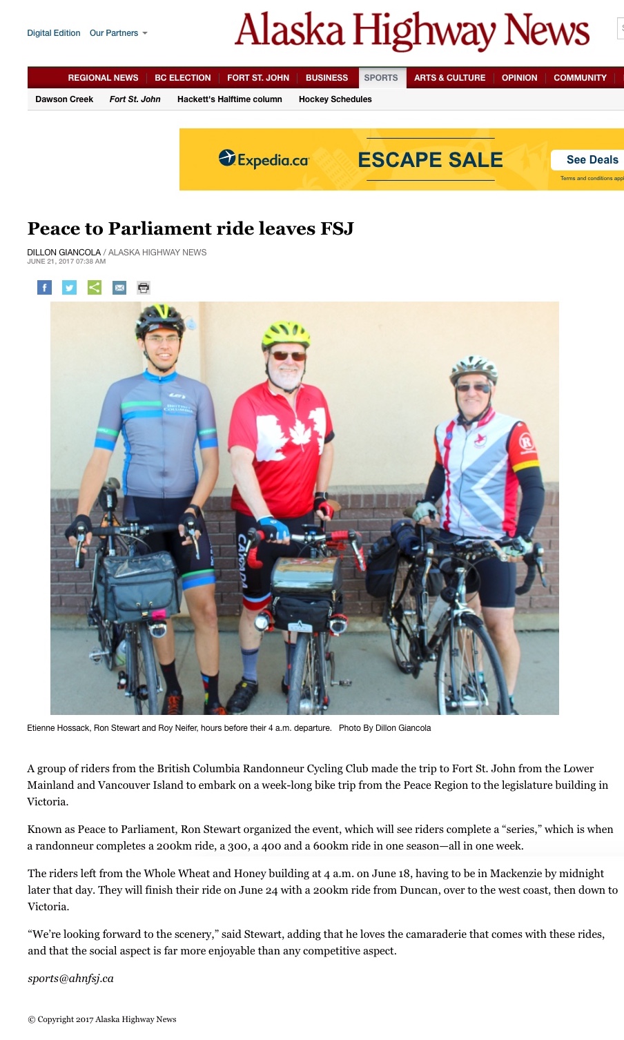 Peace to Parliament Ride Leaves FSJ There was some local press about the P2P in Fort St. John: Peace to Parliament ride leaves FSJ |