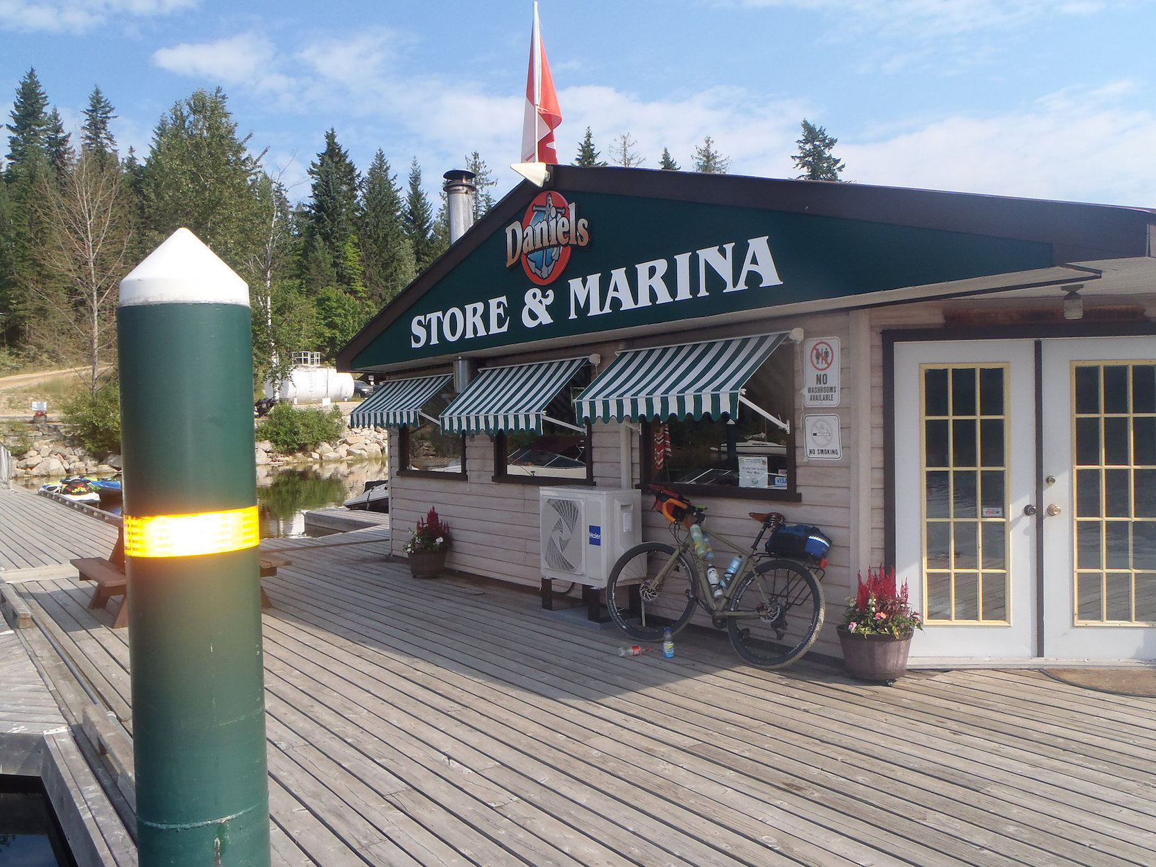 Warm Roll Hi Eric and Bob. Here's my control card and some photos from the Roll Up Yer Sleeves permanent. It was easier than I expected, except for the last 40 or so km after it got hot. Lots of climbing- Strava says 2383 m. Included 89 km of gravel, most of which was in really good shape except for bad washboard where the grade was more than 10 %- up or down. I briefly saw 15% grade on the Garmin on one climb. The entire road had been treated for dust suppression. I started at 05:00 to beat the heat and at least some of the North Shuswap summer traffic. Worked well, except for the aforementioned last 40 km. Used 2 bottles to the turnaround, 6 on the return, then a V8 chased by a beer up upon arrival at home. Had a good day, may consider this for a fall 200 next year. I would have to make sure people know what to expect. I wouldn't want to do it on less than 32 mm tires. It could be done, but it would take most of the fun out of it.
