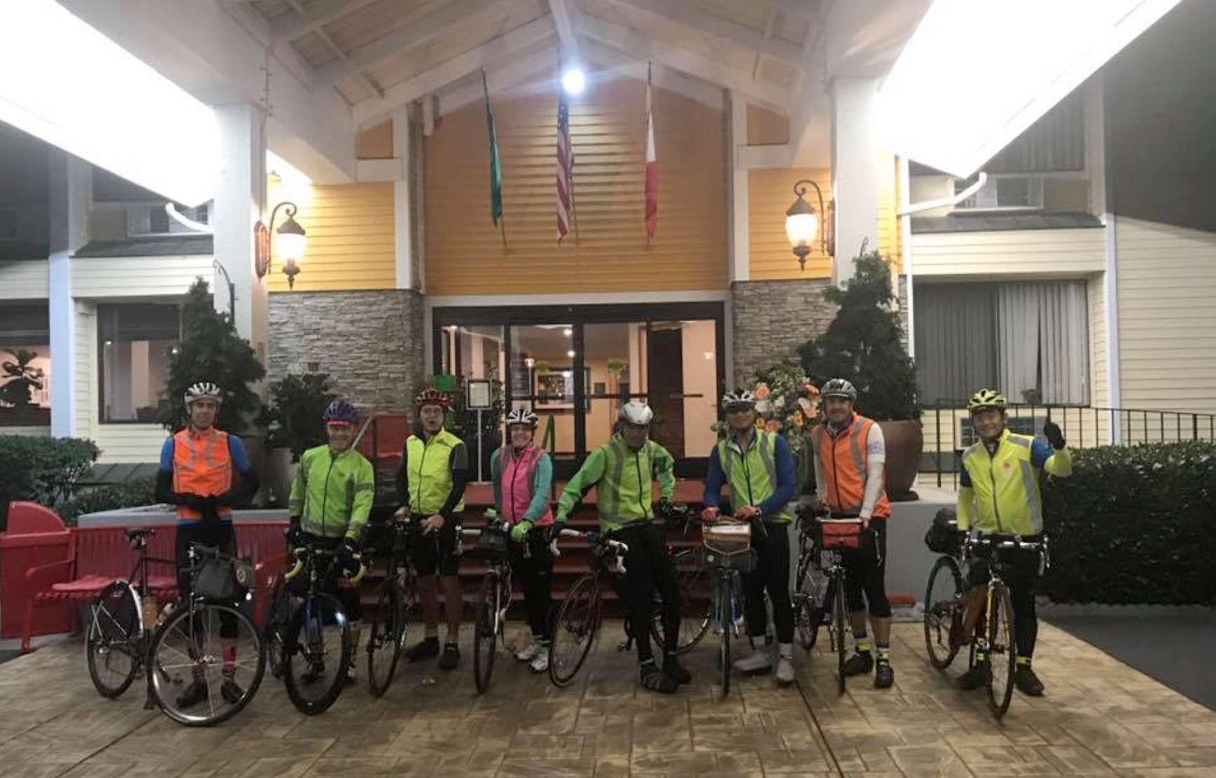 The eight of us who had signed on started in darkness from the hotel in Mount Vernon on roads familiar to me. Mick, Nigel, and Kuan took off early and built a big lead. The rest of us, including Mark from California, locals Bob and Thai, and Jan, the only female, rode a steady pace line, taking 15- to 30-minute pulls along the empty South Skagit Highway. After the road started to become hilly past Concrete on Highway 20, we caught Kuan, who had thought better of matching Mick and Nigel's aggressive tempo, especially with some major climbs approaching.