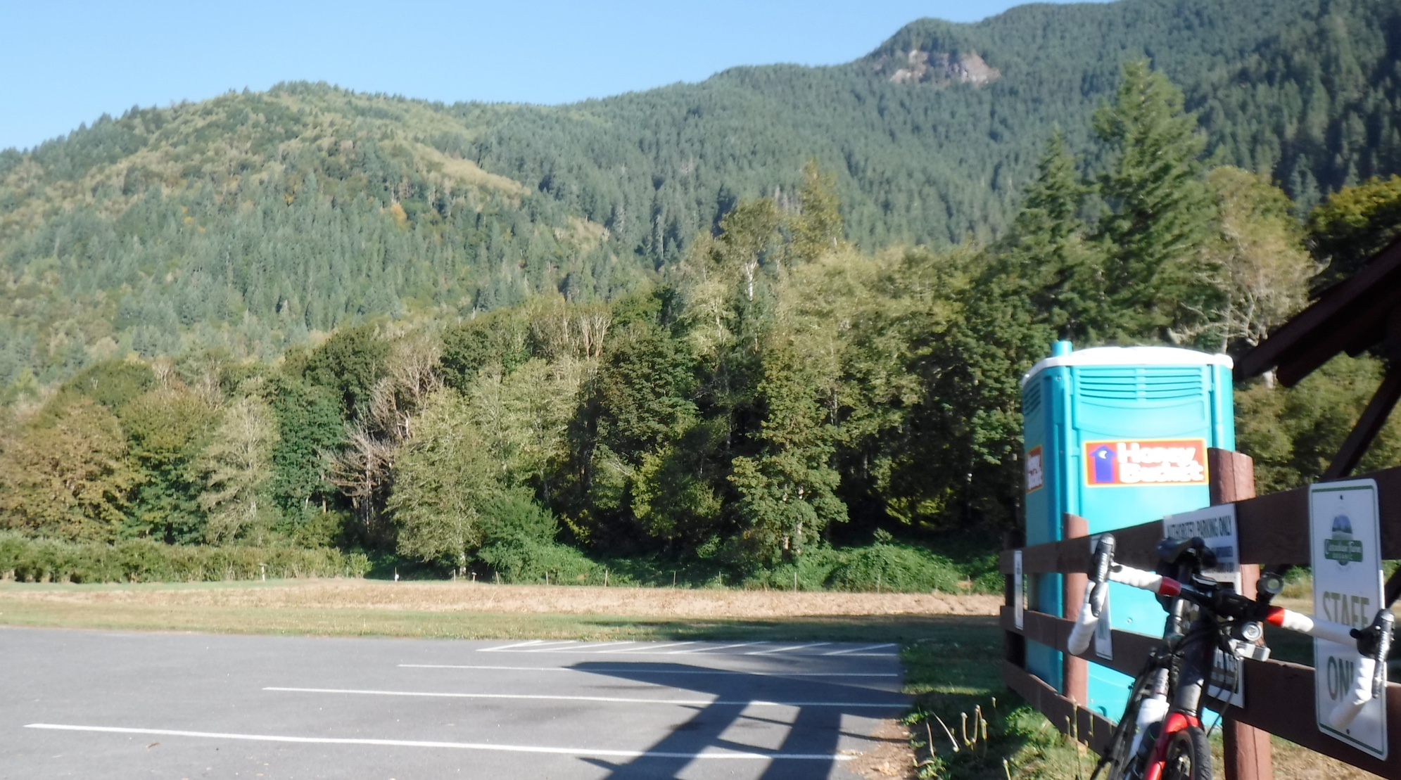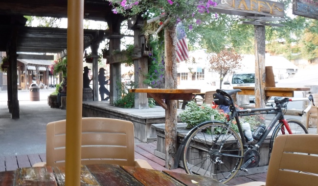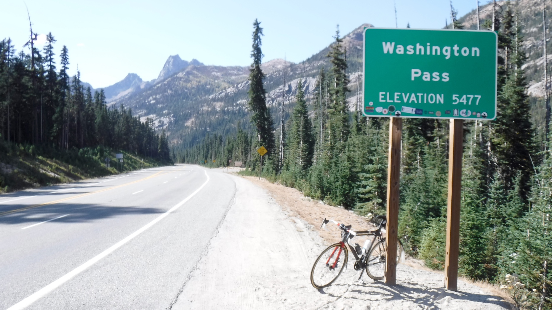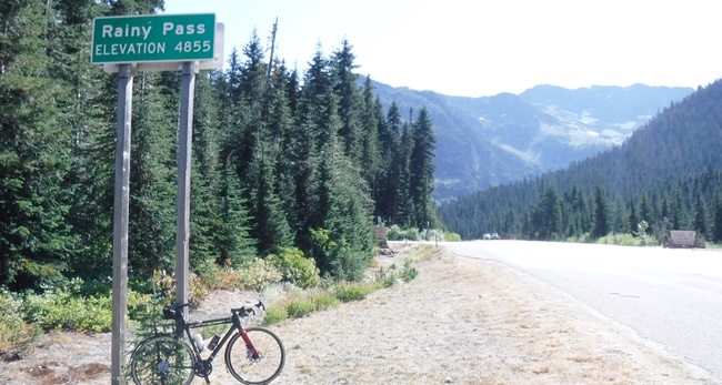I dropped back at a convenient port-a-pottie but caught up at the foot of the Rainy Pass climb and kept going. I had found that spinning smaller gears faster had got me up the Pyrenees far faster and more easily than pushing even medium-size gears, so I had the compact cranks (50/34) with the 11-32 rear cassette and had no problem dropping it into the 28 as soon as things started to slow down. When my lower back or butt got sore, I could pop it up a couple of cogs and use my body weight to drive the cranks, just as I had on the fixie. This would also be a good way to keep warm later, as mountain passes at over 1,000 meters tend to get pretty cold at night.