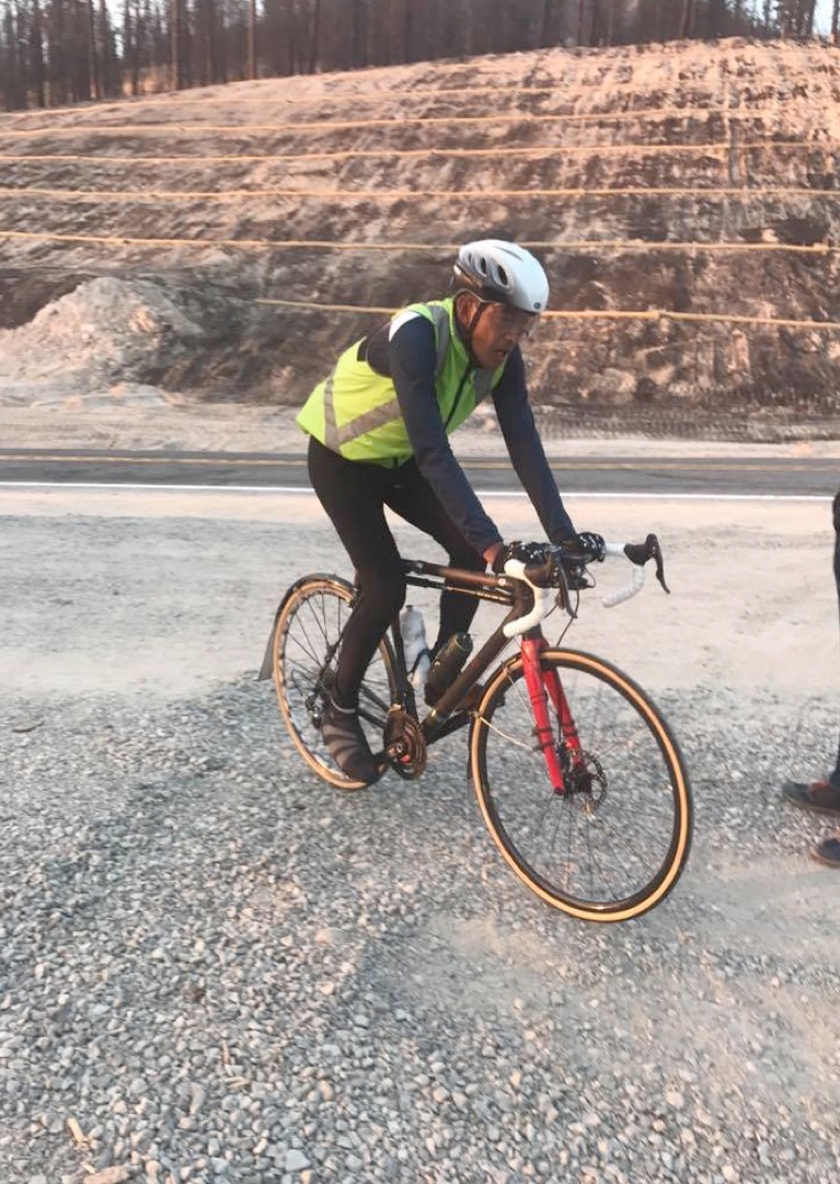 When the Hallucinations Start I first heard of the Crowsnest 1000 during the group breakfast at the end of the Seattle Randonneurs Fleche Northwest in 2017. The organizer, John Pearch from Olympia, WA, had led in another of the teams, and he mentioned something about doing a 1,000-km ride later that year. I met him again when I rode the 600-km brevet around the Olympic Peninsula. I had always wanted to do a ride around this section of Washington; I had always thought of it as being really desolate, full of lumbering logging trucks and dense fog. Instead, it was quite a nice ride with lots of sun, too many pickup trucks pulling boat trailers, lots of hills, and some cold and lonely stretches along the Hood Canal. When I finished that ride, John handed me a beer in the empty parking lot of the pub in Olympia where I finished that morning. I had ridden straight through and managed to avoid most of the later boat-hauling traffic that plagued those who opted to motel it in Port Angeles. He asked me again if I was confirmed for the 1,000. By then, I knew that the route started in Mount Vernon, crossed over the Cascades on Highway 20, then cut north onto Highway 97 to Osoyoos. It then crossed the Monashees and Selkirks in BC before returning to the US at the Idaho panhandle, then curved around western Montana before ending in the skiing mecca of Whitefish. I told John that I loved the idea of a one-way route, and especially of riding into places I'd never ridden – the mountainous sections of southern BC, and two sparsely-populated US states. I had recently bought a carbon fiber Calfee with titanium couplers, and I was anxious to take it on the most challenging paved terrain. Leading up to this ride, I had shaken down the Calfee on the aforementioned Olympic Peninsula 600, as well as a couple of brevets around Richland, WA, and one near Eugene, OR. Did I mention I like to ride on strange roads? I had also honed the bike further on the 1200-km blast furnace called the Gold Rush Randonnee in California, where I survived buffeting hot winds while the GPS showed temperatures of 46 deg C on the descent into Oroville. I had far more confidence in this bike than in my previous geared steel frame, which appeared to me to have alignment issues and would go into a speed wobble on fast descents with crosswinds. The Calfee was rock-solid at high-speed, but could be a handful on low-speed (less than 9 kmh) climbs when I was tired, but this could be a problem with any bike. In the month leading up to the Crowsnest, I'd spent a month in England, Scotland, France, and Spain riding LEL, the Raid Pyreneen, transport stages between Paris and the south of France and in the Massif Centrale, as well as the iconic Granite Anvil in Ontario. I may have been pushing it a little, as I developed a bad cough at the end of the Ontario trip, but I had a couple of weeks to recover before the Crowsnest. Even though I was feeling sick, the bike was handling fine, especially running wider 28mm tires at lower pressures, which enhanced the ride, the cornering, and the tires' longevity. The only bike issue was a recently overhauled Campag 10-speed Ergopower shifter, which I was using with a 9-speed Shimano cassette (it works great). I had recently replaced the internal springs, but shifting to larger cogs would sometimes result in some slipping during the shift. I didn't have time to deal with this, and the shifting was still fine otherwise, so I just let this go, and it never became a problem. For the Crowsnest, I used wheels with straight-pull spokes: a Ksyrium on the rear with 20 spokes, and a disc brake front wheel I had recently built with 24 straight-pull spokes, a Hope hub, and a Chinese carbon fiber rim. I had already put 1,000 km on this front wheel, so I had enough confidence that it would not fail. I wanted to see if I could get away with 24 straight-pull spokes on a wheel with a disc brake, as I had found that 28 spokes on a normal front hub had not been a problem. The rear wheel uses a rim brake because it's far lighter than a disc brake caliper and rotor, it's far easier to pack with a coupled bike, and because I don't ride enough gravel roads. There's no need for a rear disc brake on paved roads. In fact, with the front disc, I hardly ever use the rear brake anymore. Maybe on wet descents.
