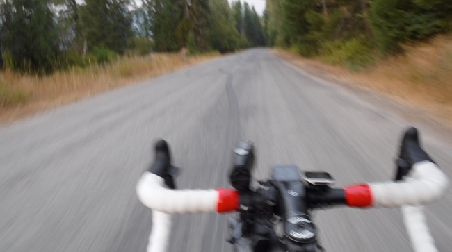 I don't remember how I got down the descent, but before it levelled off, I was shaking uncontrollably from the frigid conditions. My GPS was showing 0 deg C, and I learned later that the temperatures had gone down to minus 4. Fortunately, we at least missed the snow that would fall the next day. I stopped again, figuring it was unsafe to continue. With frozen fingers, I pulled out my phone and dialled John. "No network available." OK, I'll roll down further and try again. A few hundred meters later, same thing. Roll slowly to a rest area. Same message. And the rest area just had port-a-potties, no heated brick and mortar, otherwise I would have just slept there! So I kept coasting, pedaling slowly, or walking for the next hour. Soon, another rider, I forget who, rolled by. I asked him to let them know in Creston that I needed a ride in. He said he would, but that it would likely take another hour before anyone arrived. I said that was OK. It was around 4:30 am by now, and I was becoming sleepy and disoriented. The road, illuminated by my small battery-powered LED headlight, was no longer looking like a road. It was more like a driveway or a parking lot. The middle lane stripe no longer held any meaning, and the fog line was indistinguishable from a curb. I decided I needed some sleep, so I rode to the edge of the road and crashed the bike trying to get off. I sat and put my head down and woke up a few minutes later, somewhat refreshed. I continued coasting, then pedaling hard out of the saddle, then walking again over the next hour. Eventually, as it became lighter, I could sense that it was no longer as cold, and I could ride a bit longer before the shivering started. Pat's car finally arrived, and he told me I was only about 16 km from the motel in Creston. This seemed doable, especially after he had me sit in his Subaru with the fans blasting full heat! ![]() Forest service road With that bit of augmented warmth, I was able to ride into Creston, arriving at around 7 am. I remembered from riding the Cascade 1200 the times when I'd be leaving an overnight control after a decent night's sleep at about this time, and riders would still be just coming into the control, and I would wonder how they could keep going when they were so close to the control closing! Well, live and learn. As you get older, you get to experience just about everything you'd wondered about. The best part of the ride now was being able to get into the warm motel room and running a hot bath. I filled the tub with water as hot as I could stand, and just lay there for the next half hour. Even though inadvisable, I slept in the tub for about half that time. I then set my phone alarm for 9:15 and slept under the covers for the next 45 minutes. After getting into fresh shorts, I enjoyed the full hot breakfast provided by the motel, and finally left at around 10:15 for the final 200 km to Whitefish. I only needed to get there by 9 am the next morning, and there were no further 1700-meter passes to go over, so I figured I was safe. With Mark from California out as a result of his knee injuries being aggravated on Paulson Pass, I was now the 7th and last rider on the road, and I was at least a couple of hours behind, but that didn't bother me at all; I knew I just needed to finish, and there was no question I'd be in before the cutoff. However, just to be on the safe side, I phoned my motel in Whitefish to let them know I'd likely be in after midnight. "That's OK," they said. "We'll put your keys in an envelope and just tape it to the door of the office. You'll be able to go around the back to get in." I just love these small communities where people are still so honest. After getting to Libby, MT, where I stopped for a Big Mac at the McD's to have my card signed, the route turned away from Highway 2 and onto the forest service roads for the next 60 km. The big problem with the forest service roads, especially over such a significant distance, is that they all look the same. The same features – the plants on the side of the road, the roadside barriers, the bridge rails – all keep repeating over and over. And as the shadows lengthened, and the afternoon turned chilly, the twilight brought more tiredness as the light faded. Soon, I was riding in darkness with just the pool of light illunimating the road ahead. For long stretches, it looked like sand or snow had been spread over the road, and I began to wonder if I should have even been out on such a road surface. At odd intervals, as reason and good sense left me, I found myself turned around. I looked at the GPS and didn't see any tracks to follow. I turned the bike around, and the tracks were there! I wondered what I was doing there, and if I even belonged on this road. Nothing else seemed to be on this road; no cars had passed for ages in either direction. I would stop and sleep for five minutes at a time, being careful to stay right on the shoulder. Once I found a bridge guard rail I could sit on. Waking from a short sleep did help. At certain moments, I could convince myself that all I needed to do was to follow the GPS and I'd be fine. But at other times I didn't understand what the game was, what I was trying to accomplish, and why I had to do it on a bicycle! I thought I was gong around in circles and I'd never be able to get off the forest service roads. Eventually, I encountered John and Pat coming the other way in their SUV. They had been out looking for me, and they were able to reassure me that I was still on course, I wasn't too far behind the others, and that I had not been going in circles. I was only about 8 km from the top of the climb at Happy's Roadhouse, and I'd be back on a busier Highway 2 shortly. Thus notified, I continued the ride, even as the rain started. Things didn't get much better on Highway 2. I was expecting a good, long descent, but the road just kept climbing, the same grade as a long overpass. It was pitch-black, and the odd car or truck