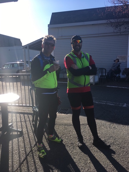 Chili Story When there is much gratitude for an amazing time we have to write about it. The Chili 200 2018 was that sort of time. 3 reasons, or 4, if you include 2 men as 1 reason. #1. Brynne and Mike hosted. Thank you for once again putting it on the calendar. #2. Co-worker and dear friend, Ann Henslowe decided in February that she really wanted to try randonneuring and suggested that we ride together. This nudging was a catalyst for me to start pedalling more in the month preceding the brevet. Fairly quickly however, it was obvious that Ann was much faster than I, so after assuring her all was well, she zoomed ahead. #3. After passing Stephen Hinde, Maciej Szarecki and Rob Nygren as they fixed Rob's flat tire on W. Saanich Road, I tried to get a good pace happening. Even so, after the turnaround heading south on Highway 17, the men passed me. Stephen pulled up and suggested that we ride Lantern Rouge together. I don't like holding others back, but he assured me that riding together was enjoyable, and I appreciated the company. At the 66 km. checkpoint at the Shell station on Quadra, we met Maciej and Rob, and pulled out shortly after them. By the next checkpoint at Mount Newton however, the men recognized that Rob was missing and there was concern. Even so, the 3 of us now forged onto the second south-bound route along Central Saanich Road. I didn't know it then, but a delightful pattern was beginning. For whatever reason, Maciej, a strong rider like Stephen, had agreed to wait for Lorraine. I'd huff and puff to where they were waiting around a bend, and then not wanting to stop, I'd zoom by. After a while, I'd feel their presence behind me, and it nudged me to pedal harder. Stephen would ride alongside and chat, and then they'd be gone, just far enough that I'd work harder than I normally would alone, trying to catch up, but I never could. Another bend, again waiting, with Stephen's assurance "Oh, we're just talking". Not wanting to say it out loud, because it was like a happy dream, but I didn't want it to end. They were supporting and nudging me to perform better than I had before. At the last checkpoint in Sidney, Stephen let me choose where we'd stop, and being tired of gas station junk food, we opted for Alexander's. Delicious and a wonderful break, it was the spot to take a photo of heroes. They were like patient big brothers, and I appreciated that they had given up their own personal fast times on a Saturday for my sake. Along Saanich Road, it was nice to hear their conversation behind me. As we drew closer to the finish, I suggested that they go ahead and I'd be fine. Stephen was firm, "We'll go in together". Along Wallace Road, they waited again, and I knew that was my cue to fly. I was elated to pedal solo hard till Interurban, where of course they passed me one last time. I couldn't catch them, though I gave it my best shot. At Colquitz overpass, they were waiting, as the sun was finally setting. "Let's get in before 6:30!" I yelled as I pushed past. They pulled into the Croy's front yard ahead of me, and I saw Brynne, Mike and Steven jumping around in their front window, just as they had in the year that I had done the dreadfully cold Chili a few years ago. (mildly hypothermic state that time). For fast folks, 11:30 will seem silly. But for me, it was a huge step and exhilarating. As I walked up the Croy's front stairs, the goddess Brynne opened her arms and said "Come to me, my child", and we laughed and shared a great hug. Remember that Brynne also greeted me in my first completed brevet in 2011, when I took 13:28. Enjoying a delicious bowl of chili and hearing the day's stories, I learned that Ann had had a blast on her own, and couldn't wait for the next one. Someone mentioned that if she rode without 2 loaded panniers, she'd be even faster than her 10:10 time on her first brevet. Before I close, I must also commend Mark Ford who did a similar thing in the Cowichan Valley Explorer in 2016, but I never got to writing about it. On that day, I was impressed that he was the organizer, a checkpoint host, and midway, suddenly riding next to me, nudged me to ride faster for a longer stretch than ever before. So here's a belated note of thanks Mark, for that gesture. In both these instances, it was done in such a way that it didn't feel like a coaching episode or pressure; but just a selfless act of support. Many thanks for all these blessings. What a great group. ![]() Stephen Hinde, Maciej Szarecki
