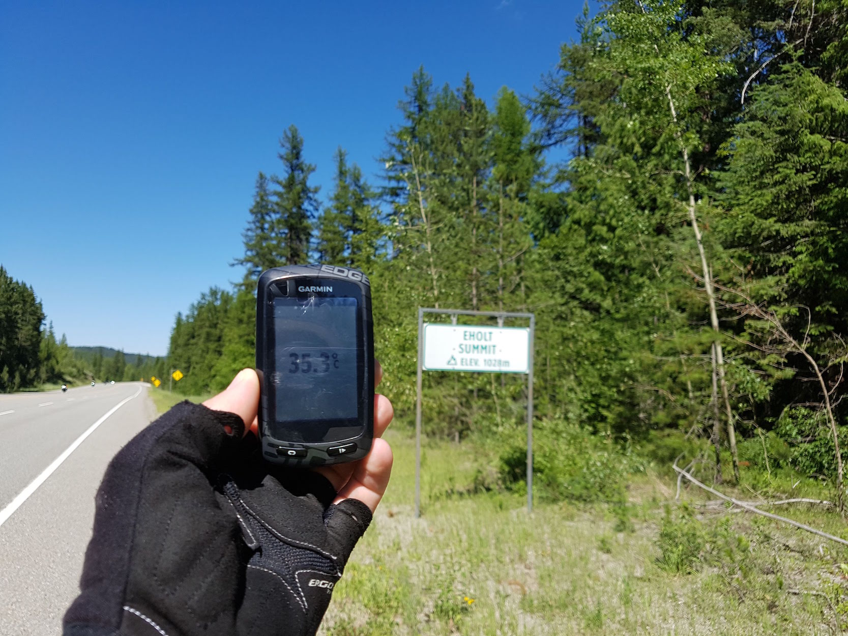 Me: Check it out, 1200km with 15,224 meters of climbing, four major passes in the first 400km! My plan was to ride it as three consecutive 400's. Creston is at 408 & 816km so I booked the same hotel for two nights and pre-ordered pizza to my room. The only 24hr services along the route are 7-elevens in Osoyoos, Creston and Fernie everything else closes at 9pm or before. Day 1, Next stop was Christina Lake for a quick rest and meal (as in egg salad sandwich and an ensure), before 75km with two passes (Paulson 1446m & Strawberry 1575m) with no services before Rossland. At the top of the passes the shoulder was in terrible shape, but with very little traffic it was not much of a concern. Ate again at the Subway in Rossland, and only stopped once more in Fruitvale for chips and pop before pressing on over (the big one) Kootney Pass, at 1775m, and down (but with a 20 minute wait for an escort vehicle over gravel roadwork) into Creston arriving at 8:45pm with the pizza, still hot, waiting for me in my room:) Day 2, First stop Cranbrook Chevron/Whitespot for a second breakfast, and then Fernie Subway for lunch. This time I noticed that the touchscreen fountain pop machine in Subway has a On the way out to Fernie it was almost non-stop traffic from Cranbrook, mostly logging and freight trucks. The shoulder was 50/50, sometimes excellent, and then suddenly nothing but broken pavement gravel and road debris. Fortunately, this part of BC has the has the most considerate truckers I have ever encountered, always passing wide even when it wasn't necessary. Heading back to Creston, there was almost no truck traffic (I guess they all finish work by 2:30 up there) but the winds were still gusting from all directions and increasingly becoming more of a headwind as Cranbrook again, this time Timmy's for two iced mocha's and two honey glazed donuts. My garmin was reading in the mid 30's for most of the afternoon and I was beginning to feel it. Arrived back in Creston by 8pm. Not feeling like pizza again, and nothing open but 7-eleven and with it being pretty hot all day... it was only logical to have a tub of ice-cream for dinner. Bit of a mistake... laid in bed buzzing until 11 or so. Day 3, Up the climb into Rossland, I got caught and passed by what looked like a pro on Temperatures and winds picked up throughout the day. From Christina Lake until the finish I had headwinds, and temperatures in the high 30's until Osoyoos, maxing at 43 degrees in Grand Forks. I adjusted my pace accordingly to avoid risking any dehydration or worse, heatstroke. Leaving Osoyoos the winds started to really pick up in earnest. I stopped in Oliver to take pictures of the flags a flapping and road signs horizontal and noticed I had a text from Cheryl "System coming this evening wind gusts up to 70km/hr". "Already started" I texted back. The last 35km was intense at times, and reminded me of being in the mosh pit at my first DOA concert as a skinny fourteen year old... just getting getting tossed around from all directions by the older punks. Also, muttered to myself "man this route is never easy".