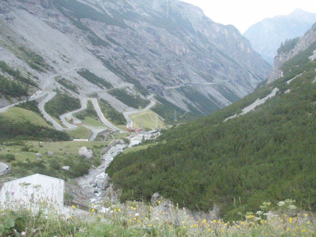 Day 1 Sunday 7/22 We were at the start line at 06.30, and from 07.00 riders were started in groups of 20 every three minutes, with the start time being recorded in our "Rando Books". This was a glossy 6 x 4 book of 75 pages, describing every stage in Italian and English and functioning as a control card. A great souvenir of the ride. The day was cool and cloudy, and luckily it did not rain. After a few flat kms we were climbing 16 kms up to Passo Foscagno. Two more passes, Eira and Forcola, before the control at Passo Bernina at 57 kms. About 33 kms of climbing altogether.