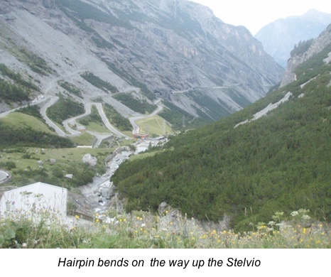I expected Antonio to have arrived at the control before me, but there was no trace of him. Totally mystified, I had a snooze on a stone floor in the hotel's storage area, and at 07.00 the next morning enjoyed the cruise down to Bormio marveling at the views. I was amazed at how many cyclists were doing the 22 km climb up to Passo Stelvio from the Bormio side. In Bormio we had to check in at the original start point control, where I was presented with an official finishers certificate from Audax Italia (141 hrs 34 min) There I found out that Antonio had arrived at Passo Stelvio after me at 06.15. Later that morning I had a coffee with Antonio at the Bormio control. We couldn't quite figure out what had happened the night before. Antonio said that he had lost all his energy on the Stelvio, and had struggled to the top. We can only surmise that he must have been off the road taking a rest at the moment when I passed by. In retrospect, I thought that the ride was an amazing journey which surpassed all my expectations. Many thanks to Antonio for being a great companion during the last few days of the ride, for enduring my bad Italian, and to the organizers and volunteers for all their efforts on our behalf. Of course the only downside is that, in a randonneur format, rides like this become somewhat of a blur, and so the sensible way to truly appreciate the scenery would be to go back, and do the ride as a two week tour! One never knows, but before I get too old, I might just have to set up another date with the Stelvio. This time we will meet in the daylight, on a nice sunny day, with the legs fresh and ready to dance all the way up the hill........