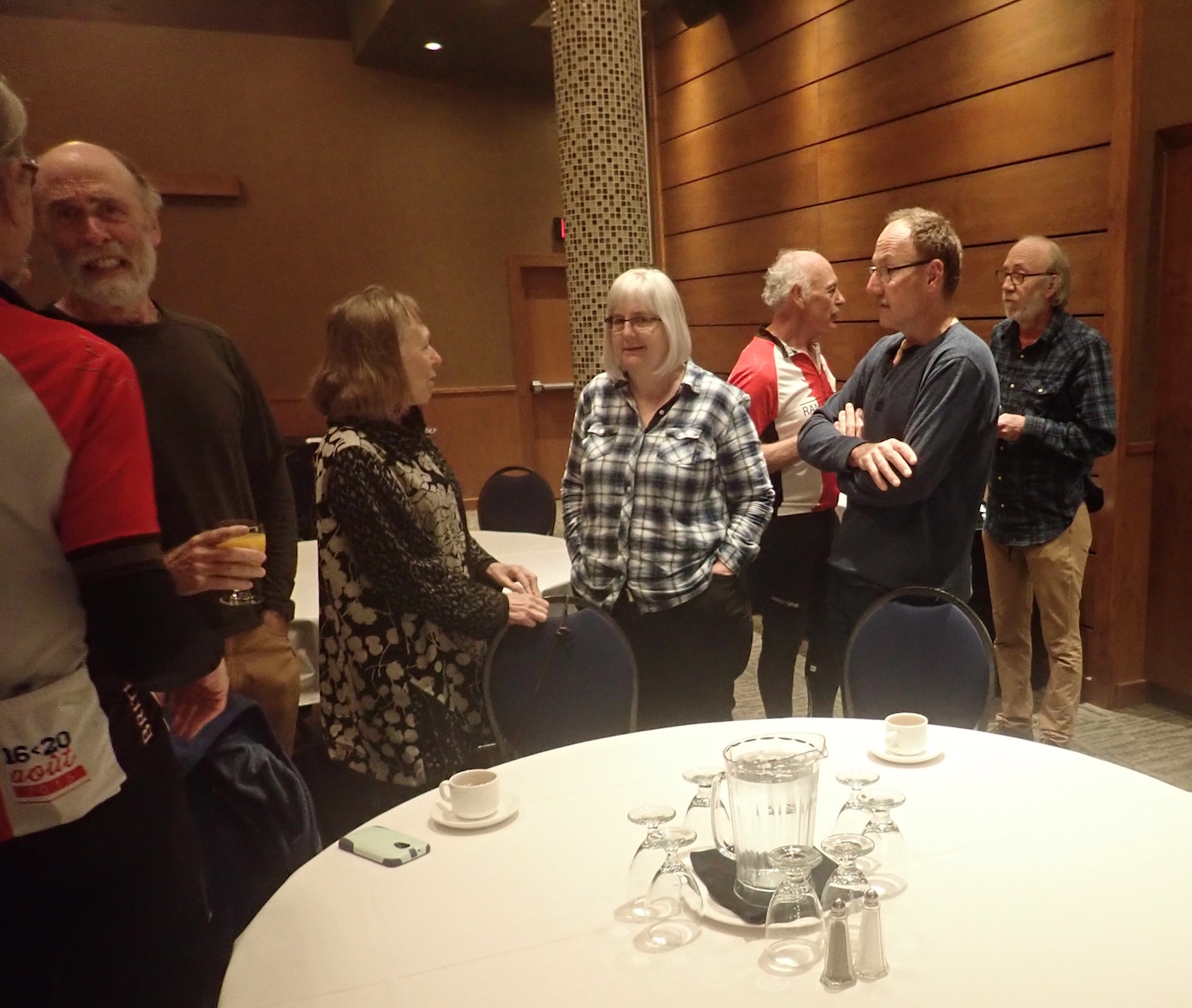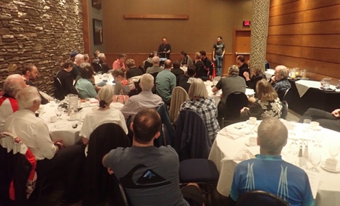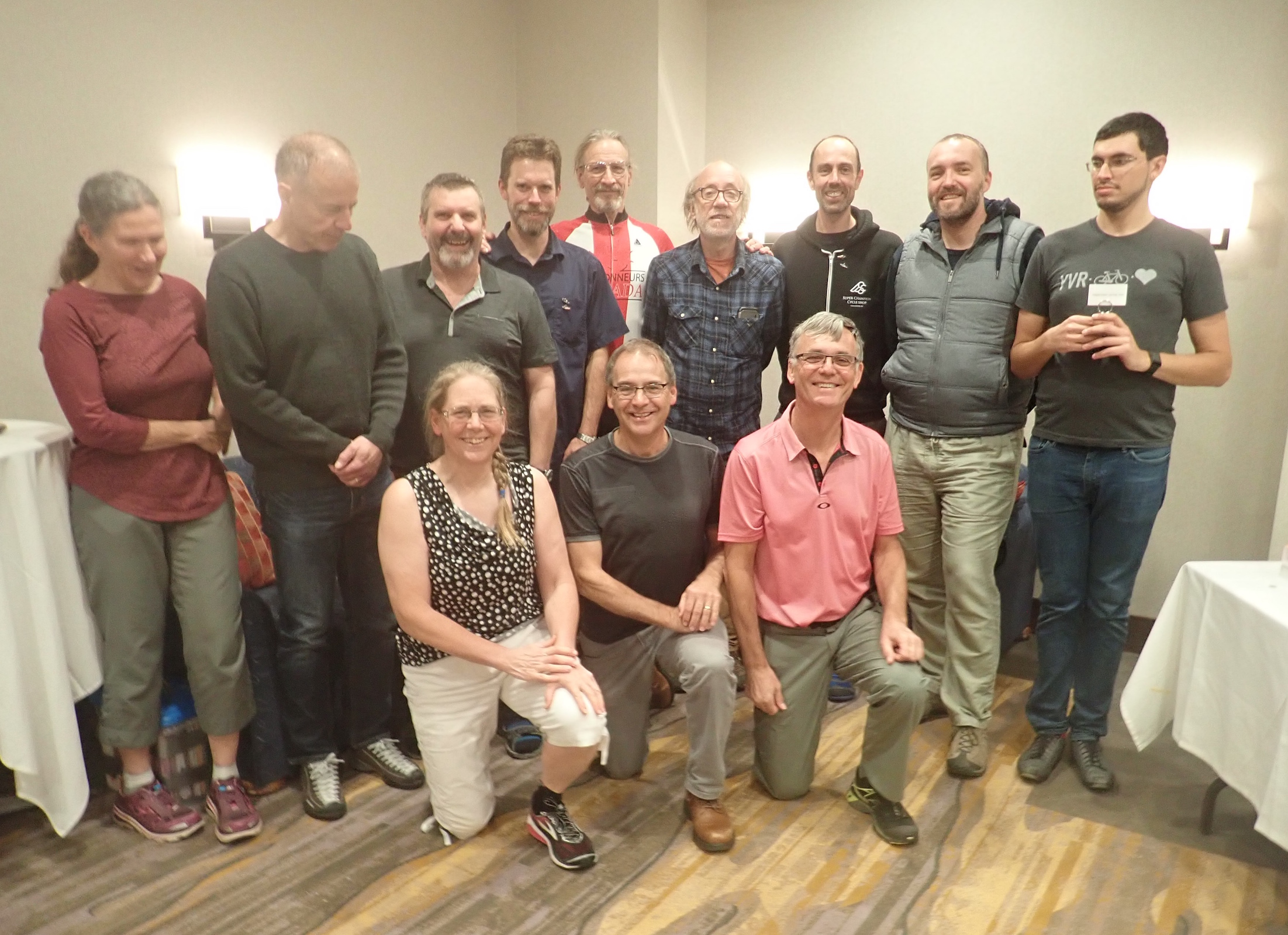 ![]() Annual General Meeting 2018 38 people attended the 2018 AGM and brunch at the Coast Tsawwassen Inn on Sunday, October 14th. Highlights included the awarding of 40,000 medals to Gary Sparks and Rick van Braber (life time event-distance of 40,000 km, 1000km brevet pins to 14 riders (photos below), and of course the 2018 volunteer pins which this year went to 93 recipients. The Harold Bridge bursary - $1000 to help defray the costs of a first time Paris Brest Paris rider - was selected in a random draw between three riders. The winner was Jacquetta Benard from Kelowna. The business part of the meeting included a special resolution this year. Members were asked to vote to adopt a revised constitution to bring the club in to compliance with British Columbia's new societies act. The vote passed unanimously. The event was emceed by two-term out-going President Étienne Hosack. As always a new executive committee was elected - see photo below. Many thanks to the three out-going committee members - John Oswlad, Chris Cullum and David King - for all their volunteer efforts.