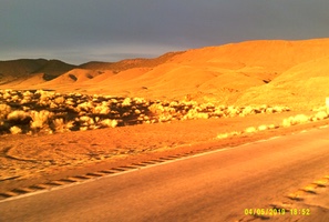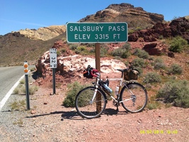 Gamblers 1000 When I first heard about the Gamblers 1000 from Reno to Las Vegas with a loop through Death Valley I was intrigued, but it didn't seem feasible. 1000 km in early April? Then it came to my attention that I had a couple of weeks of holidays that needed to be used by April 30th. Stupid or not, I signed up for it. So did Gary Sparks. Susan would drive the van and meet me at the overnight controls. Training was a struggle. The only thing that got me out the door was reminding myself what I was training for. I got in 200s in January ( relatively warm) and February (bloody cold!), and a pair of 300s in March. That would have to do. Making the training rides less appealing and more difficult was the fact that most of them were done on studded tires that weigh nearly a kilogram each. Susan and I drove down, taking a scenic route through central Washington, Oregon and the top corner of California. On the way the van developed a vibration that I thought was a lost wheel balancing weight. Our first night in Nevada was spent in Carson, and the next morning we visited the Les Schwab tire store near our motel- after enjoying having breakfast with friends of Ron Himschoot. Small world. One rear tire was completely coming apart! An hour later we were on our way, with a set of 4 new snow tires. We drove to Reno, stopping to be tourists in Virginia City (recommended!). We checked into the ride motel, and connected with Gary for dinner at the local pub. One more day until the ride, so we went into Reno. We had wandered into a couple of casinos in Carson and found them to be not our thing, but downtown Reno was great. We found a park with a path along the river, and had a great walk watching people white water kayaking- right in the middle of town! Next morning at 09:00 the ride started with a climb up the Geiger Grade to get out of Reno. The road climbs and climbs, switchback after switchback on perfectly smooth pavement. If you ever find yourself in Reno, this is a must-do ride! Just before Virginia City, we turned left down 6 Mile Canyon- not so smooth, but beautiful. Gary, who had fallen a bit behind on the climb, caught and passed me on the descent, and after we made the turn onto Hwy 50 we were able to ride together. Julianne (sp?) from somewhere near San Francisco joined our little paceline and we made good time. What little shoulder there is on Hwy 50 has rumble strips, but with little traffic - it is known as "The Loneliest Road in America" - and good sight lines it was not a problem. Also This route has very few turn instructions, but I managed to miss one, just after the first control. Fortunately someone flagged me down, and I turned around to rejoin my paceline, having only added about 500 m. We pulled into one of the few supply opportunities, at a place called Middlegate Station, in the middle of nowhere- they even had a sign to confirm it. It was full of randonneurs enjoying burgers and fries- in the dark. Apparently their generator had just gone down, and there would be no more real food until they got it up and running again. Gary and Julianne opted to wait, while I It was still dark, and about 5C when I left the motel and started up the Austin Summit, which tops out at over 2200 m. It was light at the summit, which made for spectacular views. After dropping into the Big Smokey Valley (temperature bottomed out at -7C on the way down) , it was an endless straight stretch- the 40 km one Susan measured. It started with a tailwind, but that went away, replaced with- you guessed it- a headwind, and a slight uphill grade of 0.5 to 1 %. Far more tiring than real hills. I stopped in at the only store for many miles just as a few others were leaving. There was a deli in the back, where I got a great sandwich and some macaroni salad. Just as I was leaving, John Pearch and Eric Larsen (event organizer) rolled in. The next bit was a tough, slightly uphill slog into a headwind, and I was fading noticeably when I saw a rider ahead of me. I finally caught up, and spent the rest of the day enjoying riding with Charlie Martin, also from the San Francisco area. Our speed picked up once we were trading pulls, and we arrived at the second overnight at Beatty at sunset. A beer, shower and a huge spaghetti feast prepared me for day 3. Not much navigating for day 2- only 3 or 4 lines of turn instruction, and the only control was at the end of the day. Once again I rolled out in the dark, climbing unseen hills as the temperature dropped to 5C. Then, just after daylight, the big reward- dropping into Death Valley just as the sun was It was a spectacular ride, and I am so glad that I did it. All those training rides that I did not want to do paid off, and I felt strong for most of the ride. I had no mechanical issues, other than having to tighten a loose fender stay, and the 32mm Gatorskins I was trying worked great. I had no flats, and they roll easily, although not quite as smooth as the much more fragile Panaracers I have been using. On the way home, we had some weather. It snowed on us twice (we were happy we had opted for snow tires), and crosswinds in Northern Nevada were so strong the semis were dragging their trailers sideways down the highway. I was so glad I didn't have to ride in it. Bring on the spring series and PBP! I'm ready!