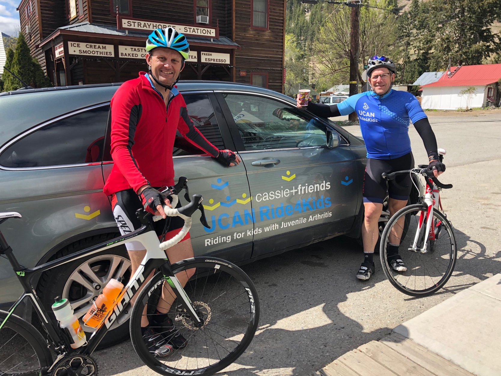 2019 UCAN Ride4Kids It was the ride of a lifetime: over 1000 Km of riding across the mountains and valleys of BC to raise awareness and funds for childhood arthritis. But it was the people, more than the scenery that made this trip memorable. The ride started in the Rocky Mountains in Alberta and proceeded along Southern BC to culminate in Vancouver on Star Wars day ("May the fourth be with you"). UCAN, by the way, stands for Understanding Childhood Arthritis Network, an international network of researchers, clinicians and families seeking to unearth the biological basis of juvenile arthritis to better personalize treatment and eventually find the cure for this disease. The ride started at the conclusion of a UCAN research meeting in Lake Louise on April 26th, 2019. Stage 1 - A bright start Under clear skies and magnificent views of the Lake Louise Glacier an intrepid group of riders representing Canada, Germany, Italy, Mexico and The Netherlands started the 2019 UCAN Ride4Kids. Attendants to the Childhood Arthritis and Beyond Conference enthusiastically bid farewell to the riders and after an inspiring speech by David Porte, Chairman of the Board of Cassie & Friends, we got started. After a tactical stop at the Lake Louise Village bike shop to set the equipment right, the 60 Km route on the Bow Valley Parkway was breathtaking and lend itself to multiple photo ops. We arrived in Banff safe and sound and with time to debrief the conference and the ride as we shared adult refreshments. Special mention goes to Alessandro, who despite a last-minute decision, a type of bike that he had never ridden before and the initial freezing descent into Lake Louise Village went on the complete the whole Stage with no problem.