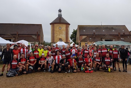 The PBP group photos were a challenge this time around. We were in the new start location - the Bergerie Nationale (National Sheepfold) at Rambouillet - and their was a little confusion about the photo location. Unfortunately some Canadian riders may have missed the photo session. And then there was the weather. Mercifully the rain paused for our photo shoot. [EF]