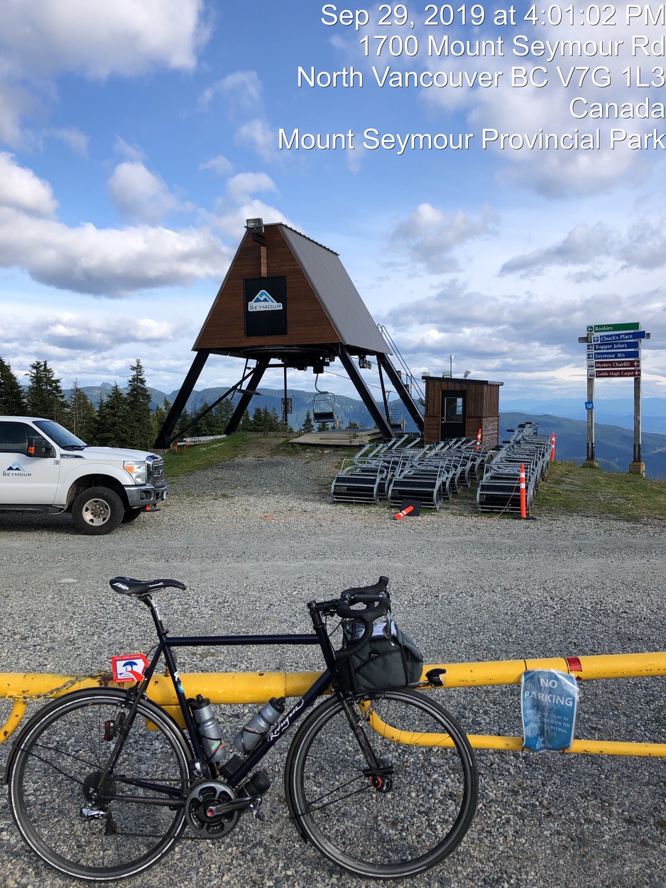 When I finally returned into Vancouver I was 3 hours behind my best-guess schedule, and 5 hours behind my ideal schedule (I had been riding at an "easy" pace in order to save my Achilles from severe over-use). So after a short detour home for a shower and 4-hour sleep, I hopped back on the road.