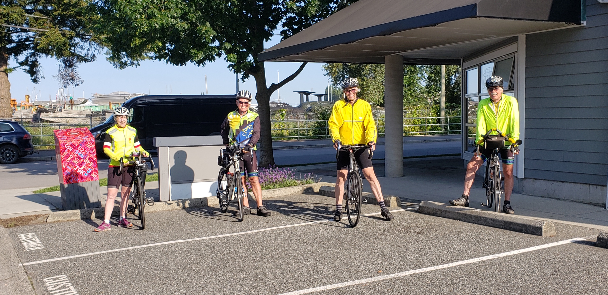 ![]() Two Trains, One Flat, and Tulloch Road At 8:00 A.M. four of us, megastar Deirdre and the three escapes from the elder hostel (Bob, Manfred, and I), headed out from the Sanctuary cafe for the Buccaneer 200 pre-ride. The Buccaneer is a favoured ride which Manfred designed a few years ago. It has little elevation, many back roads, and good food stops. A perfect early season adventure. Nigel Press had made a few changes to the route. These would help reduce some of the challenges imposed by Covid 19. We adopted a leisurely pace along the dikes towards number 5 road. A wonderful morning. The sun shimmered off of the Fraser River and a whisper of cool air caressed our cheeks. Loons and other water birds were in abundance. Cyclists gave us nods of rider camaraderie as they passed in the other direction. The beginnings of a wonderful day. We reached the Alex Fraser Bridge and crossed over to Delta. At the Otter Co-op control we made a question for the control card, recorded our time, and rode towards the next control in Crescent Beach. Randonneur breezes highlighted the joys of riding the flats. We turned right off Hornby onto 112. Just before #10, we were stopped by a train, a long train, a very long train. Although I like the rhythmic clatter of the tracks as a train races by, 10 minutes seemed like a very long wait. Finally it passed and we rode towards the Crescent Beach control. At 128 and Crescent road, amidst the summer traffic, we began our descent into Crescent Beach. Another railway crossing was ahead. The lights began to flash and the gates came down. The empty coal cars from Robert's Bank rattled by. Once again the wait seemed endless. Ten minutes later we crossed into a summer play land. Cars seemed to wander aimlessly around, like a bumper cars at the PNE. We located a fire hydrant and used its number for the control card question. We headed back up the hill out of Crescent Beach. No train. Up the gentle hill we sauntered towards 128th street. What's this Tulloch Road on the route sheet, a turn before 128th? Where did that come from? Probably the results of recent road work. We turned. Shut the door!!! A ninety degree wall! Nigel Press is a cruel Dude! The megastar Deirdre Arscott, nine times champion of the Paris Brest Paris, powered up and floated over the crest of the hill. For the three escapes from the elder hostel, life was different. Manfred's gears started to grind and snarl as did his vocalizations, but to no avail. He stopped. Bob managed to shift to his 36 tooth cog, uttered harsh profanities, and huffed and puffed up the cliff. I thought if my 24 tooth granny isn't low enough, it's time for an electric bike! Eventually I caught up with Deirdre and complimented her on her fantastic climbing. With a mischievous glint in her eyes she chuckled, "I wanted to get away from all the grumbling and moaning back there." We rode on and eventually arrived at the top of the hill which leads down to the beaches of White Rock. It's a beautiful descent. One feels like a kid gliding down an endless tarmac. Wind in your hair, sailing through the long curves, and exhilarating at the beautiful shoreline. With the smell of fish and chips permeating the air, we cruised past the seaside cafes and ice cream stands. People, who had fallen off their fitness plans during the past few months, sipped their coffees under shady umbrellas or slurped ice cream cones as they waddled along the side-walks. Physical distancing a forgotten commitment. The route continued along 8th avenue after we left White Rock. Flat roads and tailwinds. What could be better? We turned left at 184. Just before the 16th avenue turn Manfred's front tire imploded. An unscheduled rest stop. Manfred, well experienced in the art of tire repair, fiddled, faddled, and fumbled. Twenty minutes later Manfred crossed his fingers and we were off to Fort Langley. Nigel didn't seem like a cruel dude anymore. His route tweaks were minimal and required little refinement. Warm sun and mild breezes embraced us. Fort Langley is Fort Langley. A destination spot for many, a bedroom community for others, and a habitat for mosquitoes. People lined the sidewalks and filled the indoor and outdoor cafes. Like the folks in White Rock, the Fort Langley visitors had fallen off of their fitness plans. We bought some food at Lee's Market and ate outside standing beside the cordoned off patio. Mosquitoes swarmed around us in a thick cloud. I noticed a few tanking up from blood vessels in my ankles. Swat and splat to the mosquitoes! I doubt I will ever move to Fort Langley. The ride to Steveston was uneventful. Warm and sunny, light winds, and mostly flat. In early July the farmers' fields adjacent to fortieth avenue are picturesque: rich black soil, contrasted by straight rows of spring mix, and rusty farm equipment in the distance. The flight along Hwy 17 is always a treat. Strong tailwinds pushed us to the Alex Fraser Bridge. Bob shot ahead and disappeared into the distance. We met him again at the foot of the Alex Fraser Bridge. He was reclining against a tree, shoes off, and sipping fluids. Peddling up and over the bridge is a Zen-like experience of acceptance. The megastar flew ahead and the three escapees sought comfort in each others' company. The kilometres quickly rolled by and we found ourselves once again riding along the dikes of Richmond. It wasn't as quiet as it was in the morning, but it was still tranquil. A few minutes later we arrived at the Sanctuary Cafe and finished the Buccaneer 200 pre-ride. If you subtract two trains, one flat, and Tulloch Road, (and the multitude of other stops) our ride took less than 9 hours. A most excellent day.