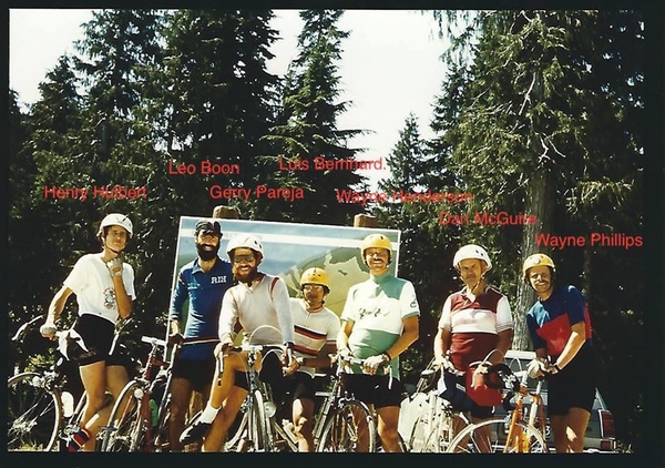![]() Click to Enlarge Some Media Links: Link to the CBC report on Dan's passing. It's also archived on this site here. 2014 Interview with Dan, archived HERE. It was reprised on CBC Radio's "As It Happens" on December 16, 2020.Thanks to Karen Smith for finding this. Dan's 2013/2014 Cross-Canada Jouney as told by Stewart McLean in a 2015 episode of the Vinyl Café. Internal link to newsletter page, where it is archived, or direct link to the MP3 file. (MP3) The CBC radio link had disappeared so many thanks to Walter Piovesan for finding this. From Dan's Cycling Friends: From Ralph Maundrell Hello, Steve, Carol, Deirdre, and Bob, I was so sorry to hear of Dan's passing. I've put a few memories down about the wonderful man that I hope you might share with others if you like. All the best! Stay safe! RalphDan McGuire's passing is a huge loss to BC's cycling community. His love of the sport, his ability to promote cycling, and his encouragement will be missed by all who knew him. I met Dan in 1982 at a Vancouver Bicycle Club meeting at Kitsilano's Bayview School. Besides commuting to work every day by bike, I had recently started running. I was a little awe-struck with Dan upon finding out he had run several marathons. We chatted, and he mentioned I might also try endurance cycling. Dan's easy-going manner and total lack of pretense inspired me to kick things up, and I completed my first marathon and Super Randonneur series the following year. Dan had the ability to instill confidence in people. Dan and I were always comfortable riding together, whether doing randonneur events, Vancouver Bicycle Club rides, or tours. I feel fortunate that I was able to learn so much about cycling from him - he was always willing to share his vast knowledge of cycling with others. The tour across northern BC that Dan organized in the early eighties will never be forgotten - it was a once-in-a-lifetime opportunity to bond with over one dozen other cyclists that included his son and sister, as I recall. I know that anyone else who was on this tour has many fond memories of the two and a half weeks spent together. If Dan wasn't riding himself, he was always ready to support others in endurance cycling events, from Wayne Phillips ill-fated Race Across America in 1985, to organizing and handing out muffins at Lower Mainland randonneur events, to travelling to France and offering encouragement to BC participants in the Paris-Brest-Paris. Unfortunately, as my randonneuring came to an end, I lost touch with Dan, but I continued to hear of his ongoing battle with Parkinson's Disease and his ceaseless riding exploits from others who knew him. Dan's strength of character and love for all things cycling will be missed all. Ralph Maundrell From Leo Boon: Sad to hear about Dan's passing. We have lost a wonderful human being, a tough old guy, a great cyclist. Blessed are we who had the opportunity to meet, cycle, talk and laugh with Dan. I had that luck to cycle with Dan, June, Gerry, Luis, John, Wayne in the early 80s. As I moved around the globe a lot I lost touch with the group, but when I reconnected with Gerry Pareja, I finally managed to sit down again with Dan after 30+ years in Vancouver in 2015. Although his speech was hard to understand, together with Gerry Pareja we looked at some of the old cycling magazines, old Vancouver Bicycle Club newsletters and other mementos I had among my travel diaries from the early 80s which I had brought for Dan to look at. It was a good visit to the memories of the early era of randonneuring in BC. We had a good laugh about some of our trips, that day. As we talked I heard the story of Dan's cycling trip to the 4 dirty corners of the Canadian landscape towel. Dan had still one corner of the Canadian towel to finish at the age of 82, the section of Dempster Highway to Inuvik in the Yukon and NWT. It weight heavy on his mind and he wanted to finish the journey, no matter the Parkinson disease that slowly had crippled him over the years. I told Dan I would use my contacts to help organise the road support for Dan’s second attempt. Getting Dan a motorhome rental so late in the season was a hard task but I managed to convince the CEO of Fraserway RV rental division with whom I worked for a number of years to get him a vehicle. Timing however was difficult. And as we know, Dan could focus intensely on an idea and the tasks that lay ahead. Loved to have been there when Dan finished that journey in Inuvik. My thoughts are with his daughter Tara who lost a great dad and to all of us who were blessed to have journeyed, even if only briefly, with Dan on the same road and in the same gear. Here is a picture before of the 1982 Triple Mountain Challenge on the top of Mtn Seymour with Dan, Gerry and the rest of alumni of the BC Randonneur Club. LB ![]() Click to Enlarge From Barry Bogart I must have met Dan in '78 through VBC, although we both worked at Hydro at the time. I saw him a lot on VBC rides but not so much on Rando rides because Dan was always ahead of me, figuratively and literally. But I saw him often when one of us were volunteering. When I learned of his cross-Canada exploits I was so impressed and inspired. If I get to the Yukon next year I will be thinking of him. Although I saw Dan a lot at scheduled events, my favorite encounter with him was unplanned. It happened when I was riding out the Crowsnest Highway heading for Alberta and Montana on a bike tour. I was crawling up to Allison Pass when he drove by and recognized me. He stopped. He was heading out to help Danelle on Tour BC I think. I told him where I was headed and he INSISTED that I go up to Nelson and take the ferry rather than take Kootenay Pass. I will never know but I am sure he was right about that! I did follow his advice. He is my hero. It is so sad that Covid took him after all he accomplished. RIP Dan. Barry From Manfred Kuchenmuller As a fellow Randonneur I always admired Dan's devotion and commitment to our 