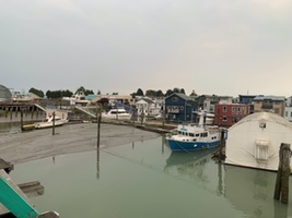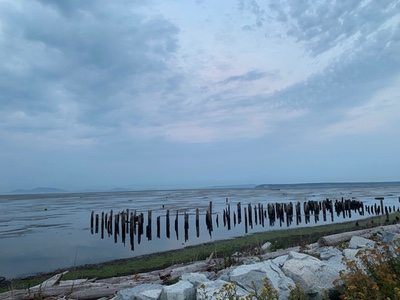 Highway 17 gets me around Surrey without all the traffic lights and hills. It's another busy highway. The shoulders are wide but in places, the shoulder debris forces me close to the traffic lanes. Still, doing the highway on a bicycle gives me time to take in the scenery. There is the river, the railyards and the towering bridges that feed the hustle and bustle of the city. After that, I ride past golf courses and bogs, where they grow cranberries. I ride through parks and historic Fort Langley. I spend much of the day following the course but not really knowing where I am. We go through a light industrial area that, on a Sunday morning, is as quiet as a ghost town. Sometimes you see an outstanding photo but don't realize it until after you are past. Such was the scene on the side of a hill with the rolling farmland below and the mountains in the distance. I wasn't going to take my weary body back to get the shot. Besides, the forest fire smoke would have made for a hazy, colourless photo. I ride past homeless camps in downtown Abbotsford. I had planned a lunch stop but I realize I am not making great time in the heat. If I settle for Cliff Bars and Gatorade, we might make the 6:00 p.m. ferry. The climbing on Day 2 seems harder than Day 1. The hills aren't as long but they seem a lot steeper... or is this just the perception of my tired legs? Eventually I am back on Highway 17 and the home stretch. I pass another cyclist and say hello. As I pass, I see a route sheet clipped on his handlebars. A dead giveaway that this is a fellow randonneur. The highway was not a safe place to stop and chat so I never get to meet Patrick who, like me, is nearing the end of his first 600. In my mind I had pictured the last 10 km of the route, it is familiar territory. I expected easy riding on quiet, flat roads, the energy that comes from nearing the finish and the satisfaction of knowing that I had done it. Some of that was true but a strong headwind made the riding hard. I was hungry and tired. I had just finished the last of my water. It was type 2 fun; not the easy ride into the finish that I was longing for. I roll into the finish; Kathy is waving frantically. It's 5:30 and the 6:00 o'clock ferry is not quite full. Deirdre is there to congratulate me. The last time I saw anyone at a finish line was in 2019! She shakes my hand; that too is something I hadn't experienced in a very long time. We chat briefly. By now Kathy is jumping up and down - it's time to go. At the ferry kiosk, we are told it is a "possible wait". The ferry is a little late - it hasn't started unloading yet. Time for a quick shower. Showering in an RV with limited water means getting yourself wet, turning off the water while you lather up with soap, and... and that is when Kathy shouts, "We're boarding." I will say one thing about BC Ferries, they know how to load a big ferry in a very short time. When your lane starts to move, it MOVES. All I can do is sit in a slippery puddle of soap and water in the windowless, shoebox sized bathroom and cling to the edge of the sink. The loudspeakers remind me to buckle up. "Bump" shouts Kathy as "Hillary" hurtles over speed bumps, sways around corners, rumbles up the ramp and bounces over the lip and into the ferry. Experienced ferry travellers are ready before they board. If you plan to eat, you jump out of your car as soon as it's parked and go straight to the cafeteria. I'm still in the shower, covered in soap! By the time we get to the cafeteria, the line is long. Kathy suggests we sit down and come back later. "No!" I moan, like a recalcitrant child. I have burned more than 7000 calories on this ride and haven't replaced half of them. Waiting is not an option! I can see how Tsawwassen-Tsawwassen-Tsawwassen could get old for veterans but seen through the eyes of a first timer, it was a wonderful ride, with endless variety and plenty of adventure. Thanks to Deirdre and Colin for organizing an outstanding ride.