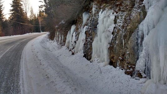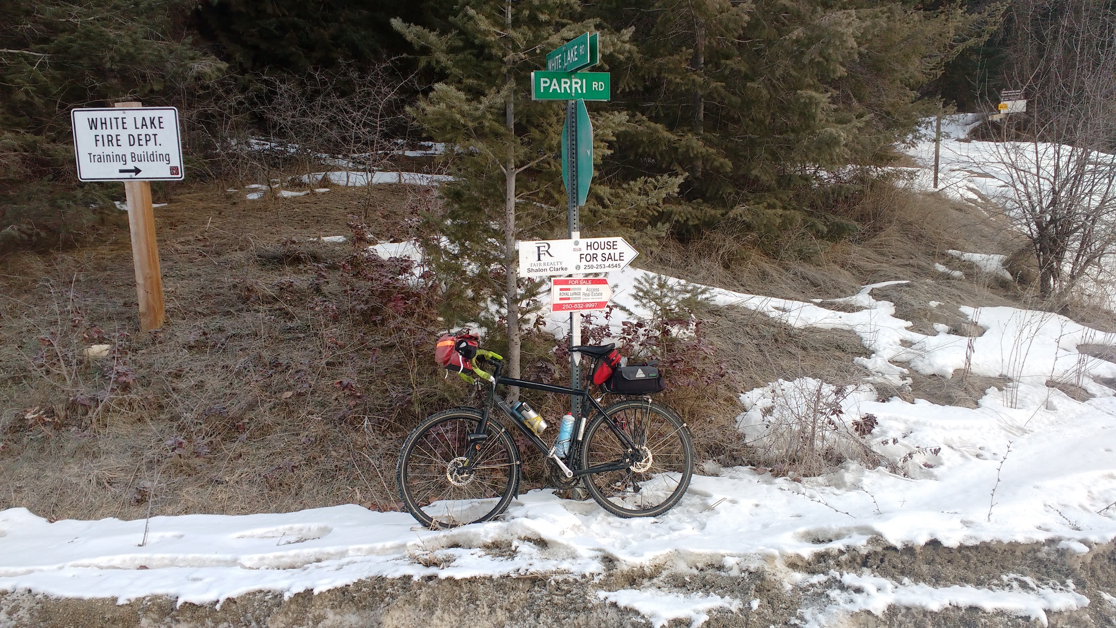 Shuswap Shorelines Done! February is the month I am most likely to torpedo my BC12. I keep thinking that if I wait one more week the roads will be better and I won't need studded tires, and just like that, the month is over and it's do or die. I don't like doing long rides on studs, but I like crashing even less, so studs it was. It was -8C to start. I added 2 extra kms passing through Sorrento to go home and get a power bank for the Garmin because it became obvious that the cold was reducing its range drastically. Roads were very icy in places, especially Wild Rose Bay. Occasional fierce winds- crosswind on Squilax bridge was scary.