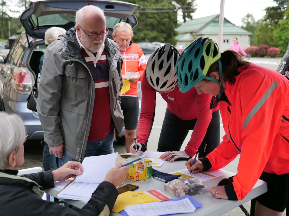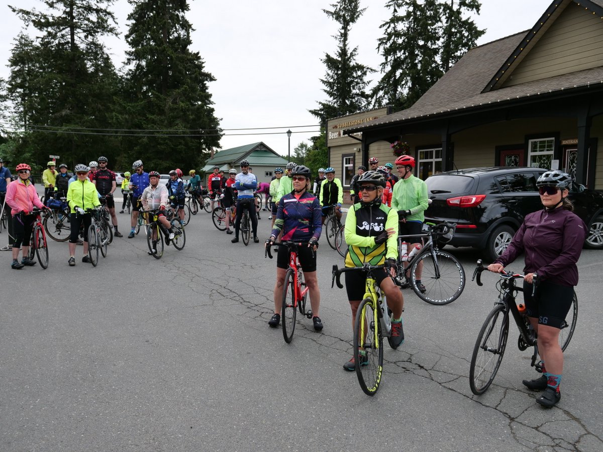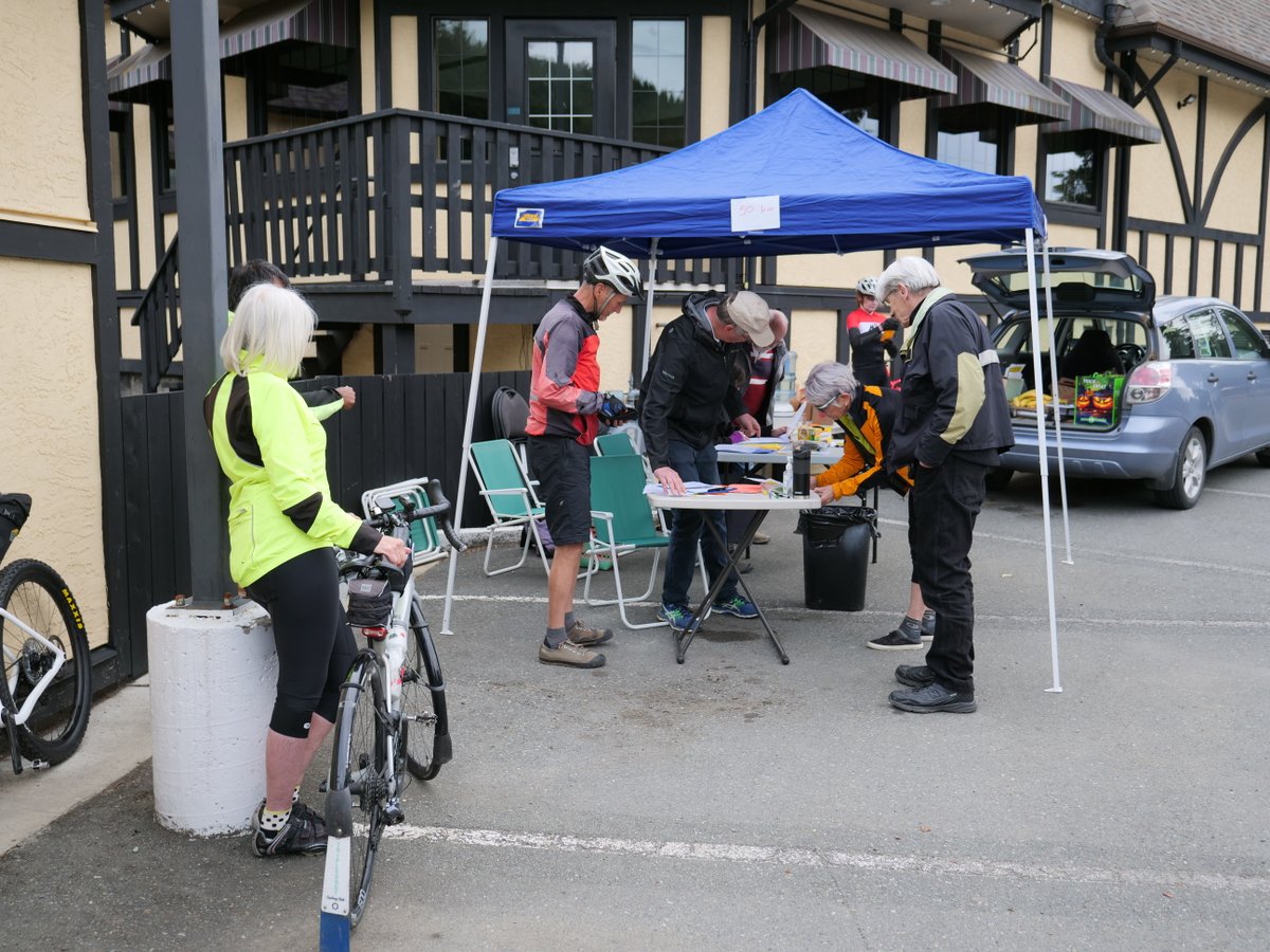 Cowichan Populaire 2022 After the Covid interlude, the Cowichan Populaire arose from the ashes on June 18 and was well received by 93 registered riders, of whom 84 started and 77 finished. The event enjoyed the hospitality of the Cobblestone Pub in Cobble Hill, which has also arisen from the ashes of its 2018 fire. Cow Pop veterans will recall that we had planned to enjoy its facilities that year, but the fire occurred just two days before the ride and it'’'s taken a while to pick up where we left off. Weather was mixed, cloudy, some sun, some light rain and some heavy rain, depending on where you were and when you were there - it's Junuary, after all. Still the riders bore up and generally finished in good spirits. Between then and now we revised the routes somewhat, with all three pelotons circumnavigating Shawnigan Lake, visiting West Shawnigan Lake park before heading out to the other controls. We thank the Cowichan Rugby Club and Russel Farm for allowing us to use their space; the other controls were at Lake Cowichan and Glenora public spaces. The longer routes were more challenging this year because of the closure of Allenby Road, which required us to send riders up the Indian Road climb up to Glenora in order to get the distance we wanted. Traditionally the climb up Koksilah Rd is the major annoyance, and it was still in, but this year we included an excursion past the old Cowichan Station railway stop to break up the grind. But despite the additional elevation, the routes got a lot of good reviews, so we must be doing something right - we even had one person volunteer to help next year! We were able to recruit local businesses to support the ride, the Cobblestone first and foremost, so that we could reward early registrants with a complimentary beverage, and others provided door prizes to enliven the afternoon. Thanks to Cycle Therapy for a splendid Bontrager helmet won by Dan Biles, to Experience Cycling for a premium Specialized tire won by Ron Myers, and Wendy at Hicks barbershop for complimentary of haircuts, won by Dirk Jeziersky and Connie Dunwoody. Enjoy in good health! Nothing happens without good people, and we had the best. Great thanks to Dug Andrusiak, Norm Bennett, Buddy Bhandar, Edie and Graham Fishlock, Fred Fowler, Melissa Haynes, Paul Hovey, Mary Payten and Ross Pratt for showing up early, staying late, doing anything that needed doing and generally being indispensable. Well done, crew!