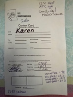 ![]() Karen's cards are always interesting. Notice that on right edge of the cards she has marked down her control times from her November and December rides on the same route, for comparison purposes. [EF]