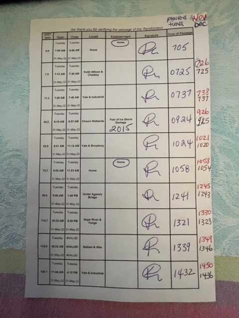 Return to the Flood Route Permanent Brevet #216, 200 km Ride Date: May 31, 2022 by Karen Smith Permanent #216 May 31, 2022 200 km Solo I had been off the bike since early January due to a pulled intercostal muscle which I hurt while taking down outdoor Christmas decorations. Good grief! It took more than 8 weeks to heal! My last permanent was in December. What I remember the most from this ride, were the smells! Powerful smells! Well today, even a local could smell it! It was a really nice day! It got up to 25 degrees and I was overdressed. And it was good to ride with cycling glasses and mirror and bike computer again. I had been without these 3 essential tools for a while. : )