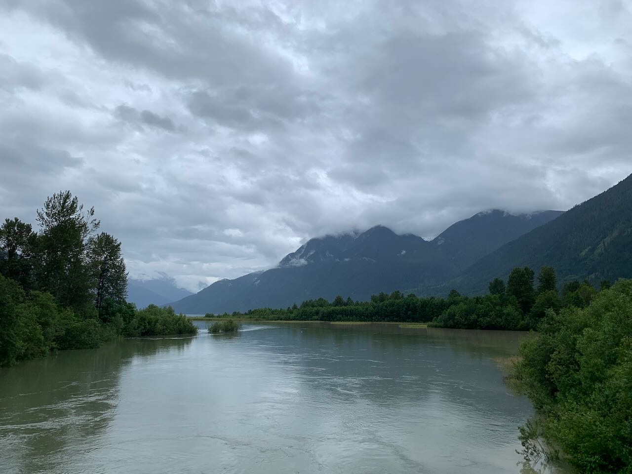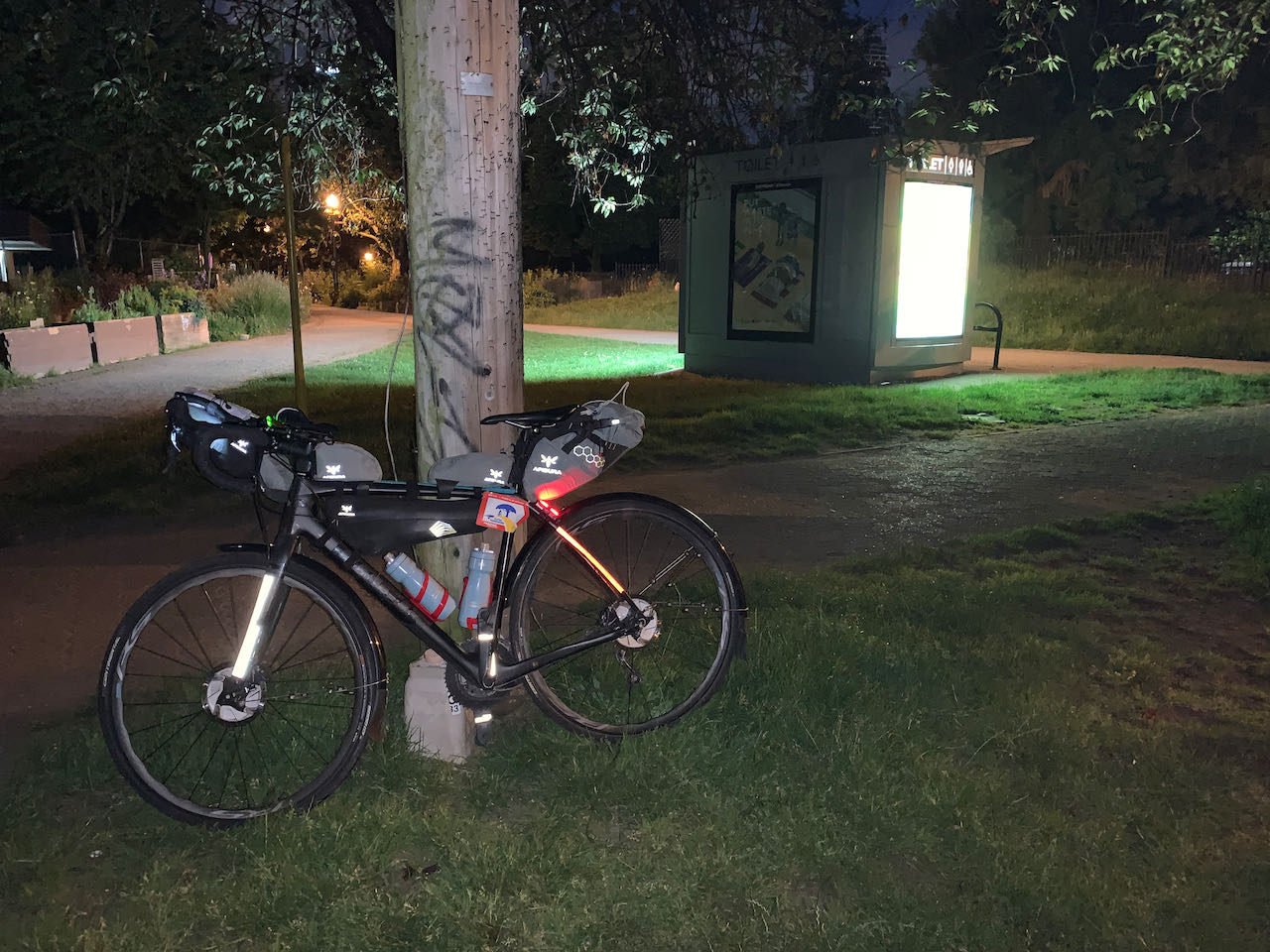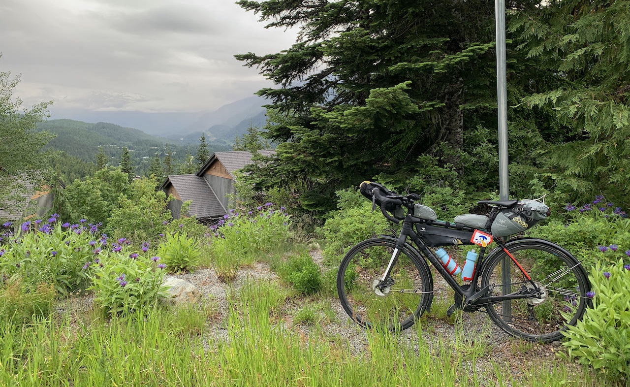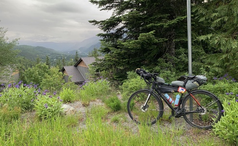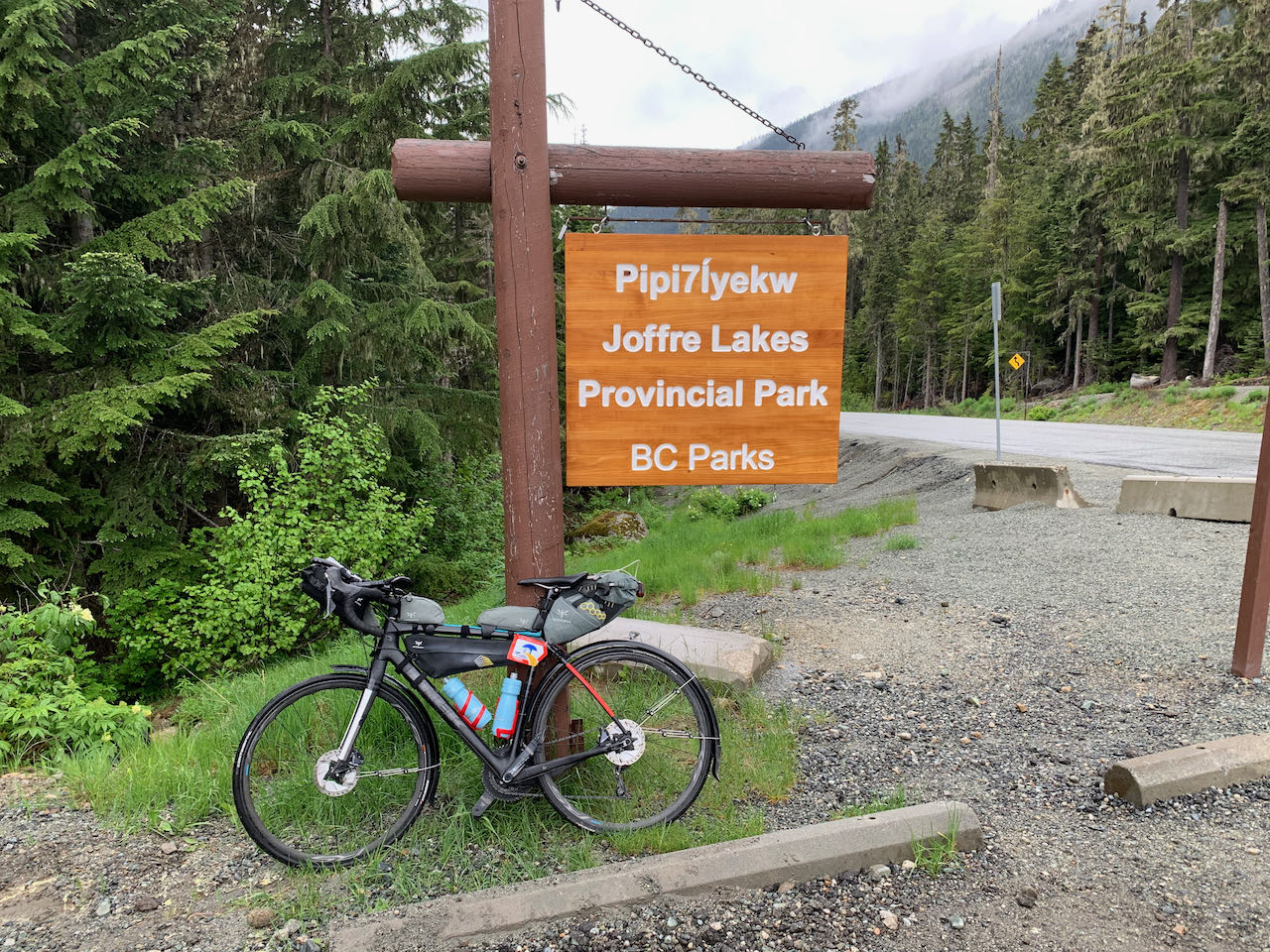 I have never been to Joffre Lakes. From the photos I have seen, it looks breathtaking. Alas, I saw none of it. Yes, I made it to the top but from the parking lot entrance, there was nothing to see but grey sky and trees. It gives me a reason to return when I'm not on the clock. I took the mandatory control picture and added more layers for the long descent. In the Super Randonnées, the proof that you arrived at each control is a prescribed photograph of your bicycle, with its frame badge at the location. Prior to leaving, I had printed the required photos for each control so that I always knew that I was taking the picture the way the organizer intended. Needless to say, the descent was fast. I was focused on nothing but the road as I plunged down the 13 km long hill. It wasn't until later that I learned that my average speed was close to 50 km/hr with a peak of 68. It was intense and exhausting. And it was over in 15 minutes. Thankfully the rain had stopped because at those speeds, raindrops would have been painful. I had planned to place my dinner order when I was about 30 minutes from Pemberton. That way I could have a hot meal without the wait. The mosquitoes had different plans. Whenever I stopped, they attacked. Whatever time I was going to save by calling ahead wasn't worth it. I stopped at Backcountry Pizza for dinner. I still had a lot of climbing to get back up to Whistler but it was nice to take a break. The pizza was delicious, and I ate the whole thing.