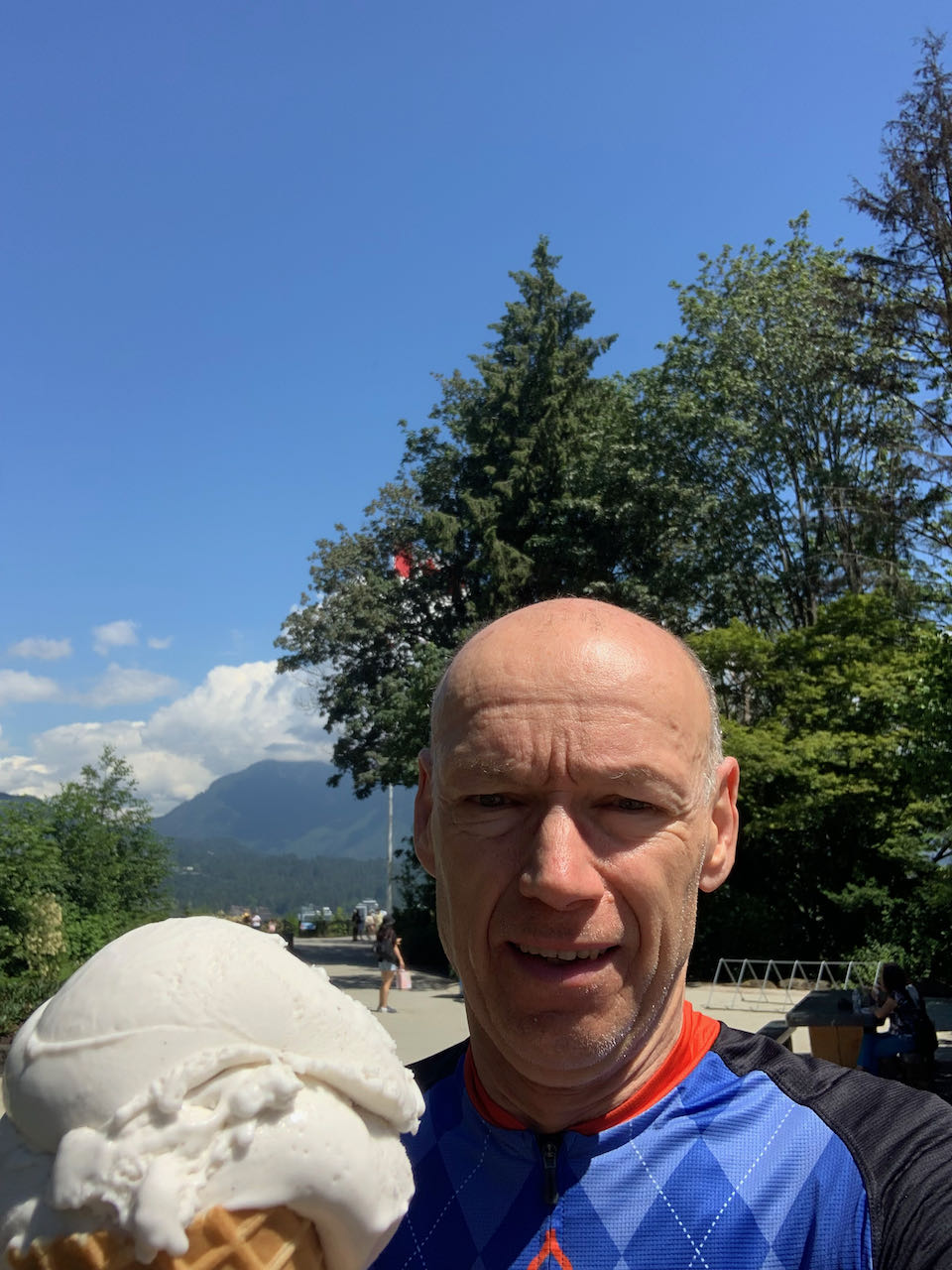 I coasted down the Lion's Gate Bridge for the last time and suddenly it was over. I was at the Prospect Point Lookout in Stanley Park. Time for an ice cream! 609 km with 10880 m of climbing in 55 hours, 58 minutes. Yes, I can.