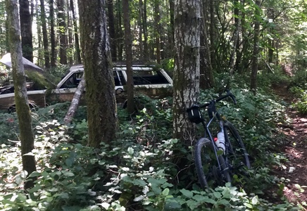I bailed on the permanent. I was infused with antipathy on the way to Squamish. Maybe because I'd seen the Crouching Rat 300 riders off and was wondering why I was off by myself instead of riding with them. And on the way to Squamish, the clouds got dark and grey and there was a spit of rain. So I was sitting in the parking lot and thinking I really didn't want to do this. So I didn't. I pivoted and did a ride up to Hut Lake instead.