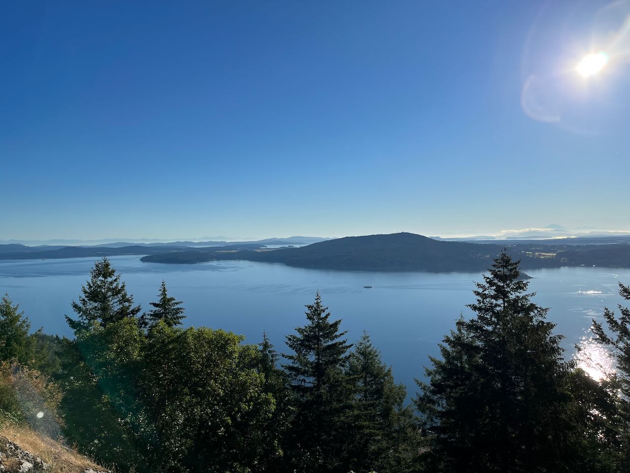 The view from the Summit Viewpoint is nice. It is our first control of the ride. I take pictures and look for anything that would make a good question to put on the control card. A short distance down the hill is the Split Rock Lookout. So named because a distinctive rock separates the highway from the Lookout. It is much smaller than the Summit Viewpoint and not part of the prescribed course but the views are breathtaking. I had to pull in for a photo. I had a very quick conversation with a couple who were also enjoying the view and lighting a bong. I don't know what they were about to smoke but I couldn't help but think that it was not likely to enhance their ability to drive. In the blink of an eye, we are down the hill and exiting the highway. The quiet is soothing after the exhilaration of the descent. Now at sea level, we ride along the beach towards Mill Bay. Buddy decides to stop for a smoothie in Mill Bay. I press on knowing that Buddy will eventually catch me. I ride towards Shawnigan Lake at an easy pace, stopping to take photos of anything that amuses me.