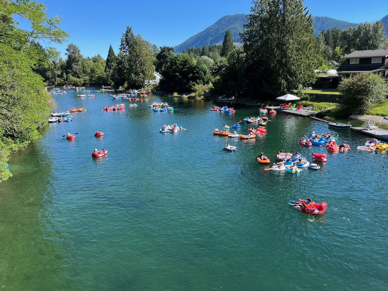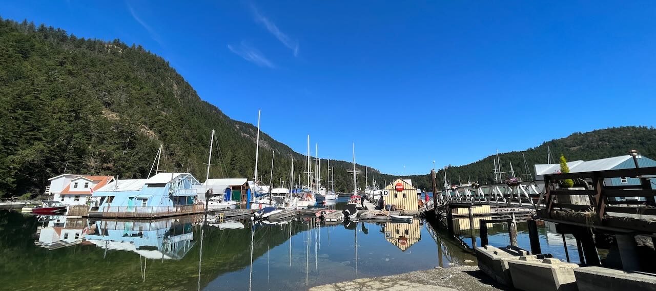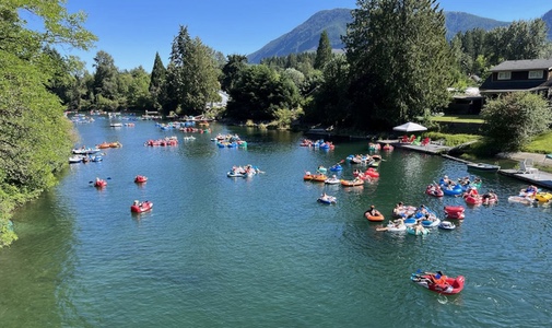 After returning to Maple Bay, we left the shoreline and rode to Duncan, where the climb to Cowichan Lake started in earnest. It's not a huge climb but by now it was getting hot. I watched a traffic jam of tubers on the Cowichan River, envying their cool flotilla. After the Gordon Bay Provincial Park control, I returned to the town of Lake Cowichan for a late lunch. It took some effort to leave the air conditioning and return to my bike for the hot ride Youbou.