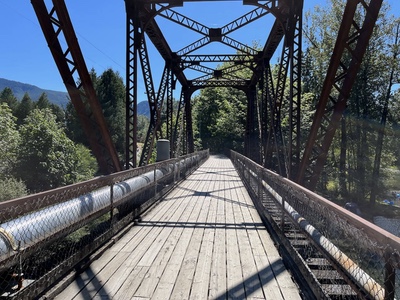 The Bridges & Ferry Tour 1000 (pre-ride) This was my second attempt at a 1000 brevet. My first one was unsuccessful - I didn't have the strength for the hills or the stamina for the distance. Click here for that story. This time, I was stronger, fitter and well rested. I was ready. Day 1 There are only two of us doing the pre-ride but Gord and Mark came to see us off. Gord very graciously offered to take our drop bags to Nanaimo. This meant that I could ride a lot lighter than I had on my first attempt at the 1000. Mark admonished me to take lots of pictures and do a writeup for the Newsletter. Buddy and I left in the morning twilight heading for the Malahat. It didn't take long for me to realize that it was colder than I thought. There was a marked difference between the temperature on the hills and the temperature in the valleys. With no wind, a cold damp had settled on the valley floors. We've only just started and I am stopping to put on an extra layer. At start of the Malahat, it is time to stop for a bathroom break and to remove some layers for the long climb ahead. I wasn't the least concerned about the climb. I had done much, much tougher climbs a few weeks ago on the SR-600. My big worry was the Malahat is a notorious road with a less than stellar safety record. The lower, narrow section was the worst. In this section the highway is a narrow, winding, two lane, divided road. Which means each direction is a single lane that is constrained by a barrier in the middle of the highway. Traffic has nowhere to go to avoid a cyclist. This is not as bad as it sounds, there is a wide enough shoulder with rumble strips to keep the traffic from drifting onto the shoulder. But it does mean that bicycles must ride in whatever debris there is on the shoulder. And there was lots of debris. It was like riding in gravel. It would be alright if the gravel was free from glass, if not, a flat seemed inevitable but a flat was preferable to riding in the traffic lane. Early Saturday morning traffic was light making the dreaded route quite pleasant. There are pretty glimpses of Finlayson Arm that are invisible from a car. The winding road makes the riding interesting and the grades are never hard. Before long the highway widens to four lanes, giving traffic the room to pass wide. The shoulder became wider and cleaner.