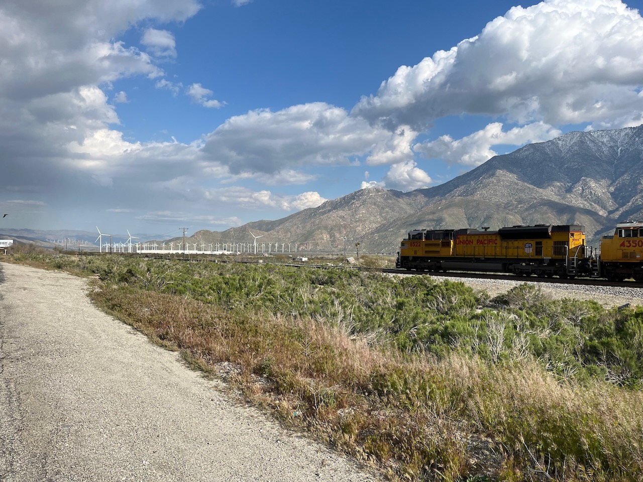 Borrego Springs 600 It started with a cold and fast descent in darkness from Foothill Ranch, Lake Forest to sea level at Laguna Beach. This is Southern California but I needed my winter layers to be warm. It was still dark as we rolled past the shops, boutiques and cafés on the Pacific Coast Highway in Laguna Beach. We rode north on the PCH to a turnaround at Huntington Beach. At the Huntington Beach control I forgot to take my photograph for proof of passage and ended up turning around and going back for it. At that point I lost contact with the group but I didn't really mind because it allowed me to stop and take photographs whenever I felt like it. The return was on the Huntington Beach bike trail which meant no traffic. From there I turned inland on the Santa Ana River Trail. The Santa Ana River was flowing swiftly. I am told this is a rarity. They've had so much rain here that there was a roadside sign, lamenting how much the sign writer missed the drought. I rolled along the river, through valleys, through parks, and through towns as I slowly climbed towards the peak at the city of Beaumont. Somewhere along the way, I saw a roadrunner. Like from the cartoon only real! It was doing what its name suggested, running across the road. It ran so fast that all it had to do was open its wings to get airborne and glide over the curb-no flapping involved. After Beaumont, there was a gradual descent and a strong tailwind through the desert, past towering wind farms to Palm Springs, Palm Desert, and the Salton Sea. Nightfall arrived before I reached the Salton Sea. The final 40 km to Borrego Springs was uphill with a punishing headwind. The overnight control was at the 400 km milestone. At Borrego Springs there was hot food and a bed for a very short sleep. I was on the road before 5:00 the next morning. I only had 200 km to go, but it started with a monstrous climb. From Borrego Springs it was 1100 m of nonstop climbing to reach the summit on Montezuma Valley Road. But it wasn't just the climbing there was also a strong headwind to make it hard. At one point the grade and headwind were so intense that I came to a complete standstill. We were warned that at the top it would be cold. It was about 2°C. I didn't really notice it on the ascent because I was working hard enough to stay warm, but when I reached the summit, I put on the warmest layers I had for a very cold descent. The contrast in the landscape could not have been more stark. On the climb up, it was arid and rocky with only the hardiest of cacti, clinging to their meagre existence on the windswept mountain. On the other side, it was lush, green pastureland with trees and fast flowing creeks. Further down the pastureland gave way to orchards. I got a flat shortly after sunrise on the big climb. Fortunately, my tubeless tires did what they were meant to do and self-sealed. All I had to do was pump the tire back up. That held for several hours until I hit a cattle grid as I approached the towering Harrah's casino in Valley Center. After that the tire would not hold air for long, so I had to stop and put in a tube. I guess Harrah's casino is not a lucky place. There were many valleys and many climbs. My legs were exhausted from the big climb up Montezuma Valley Road. I was struggling. It didn't help when a motorist threw their drink at me as I was coasting down a hill. I eventually made it to sea level at Oceanside and stopped for some lunch. Now there were only 70 km to go. But of course, more relentless headwinds. At Dana Beach I turned inland for the final climb back to Foothill Ranch. No more headwinds but 300 m of climbing to get to the finish. It was dark as I rode the final stretches. I was exhausted but I made it with about an hour to spare. I had so looked forward to a luxurious shower and a long sleep. I got the shower, but the sleep was not nearly long enough as I had to catch an early morning commuter train to Los Angeles for the long train ride from LA to Seattle where Kathy would be waiting to take me home. On the way home my train got stuck in deep snow somewhere in the mountains in southern Oregon. In the end it meant that I got an extra night's sleep on the train. I arrived in Seattle at first light, about 11 hours behind schedule. But that too was part of the adventure.