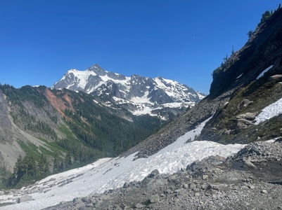 Kulshan 300 I had always wanted to do the Mt Baker climb (Kulshan) but had only ever been up there by car for hiking. So when it popped up as a July brevet, I could not resist. For reasons I won’t get into, the days before the event were really, really not conducive to a restful leadup. So I showed up on Saturday morning, kind of sort of just barely ready to go. It was already hot at 6:45am, which was a bit ominous. Andrew regaled us with tales of roasting on the previous week’s pre-ride, and just before pulling out, Mike H. muttered ‘not looking forward to this’ and I knew this was shaping up to be a very long day. We worked our way east through the Fraser Valley, heading towards the Sumas border crossing. The ride along Zero Avenue with Colin was quite pleasant, with light traffic and plenty of bikes. We were passed by a number of club pacelines, as well as by occasional triathlon time-trialers. I don’t know if it’s my imagination, but the tri crowd seems to take themselves very seriously. The full extent of a typical interaction out on the roads is usually a barked command—'ON YOUR LEFT’. But to each his own. Over the border, the agricultural geography continued, but not for long, as the road steepened on the climb up to Silver Lake. This turned out to be a very pleasant and quiet 2 lane spin through forest and rural properties. Much of this part fortunately was shaded as well. At one point, I spied someone filling up jugs of water from a pipe emerging from a steep slope. I stopped to check it out and the woman told me it was the best natural spring water available, so I had a quick refreshing ‘shower’ and enjoyed the coolness which lasted nearly until Glacier. From Glacier on, I tag-teamed up the climb with Benjamin, who was wisely going at a measured pace. I would pass him, then stop at any little stream to soak my cap, neck gator, and jersey, and then he would pass me, and so on. I really do not like riding in intense heat, and my strategy was to do everything I could to keep a lid on body temperature. When the climb popped out into the alpine, the road was totally exposed, and it felt like riding in a rotisserie—albeit with a really nice view. A number of stops to stuff snow down the back of my jersey helped to some extent.