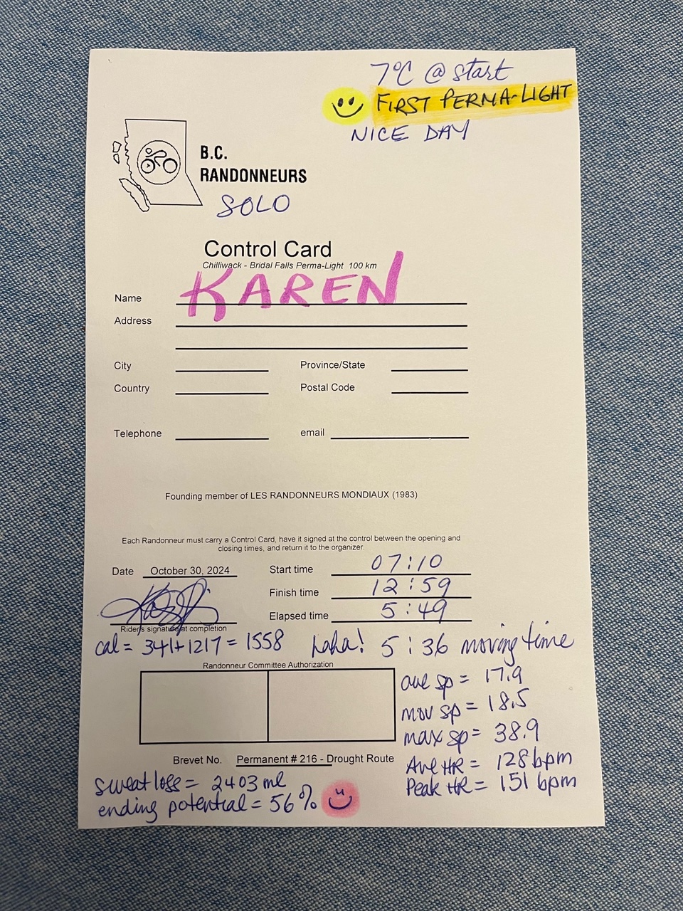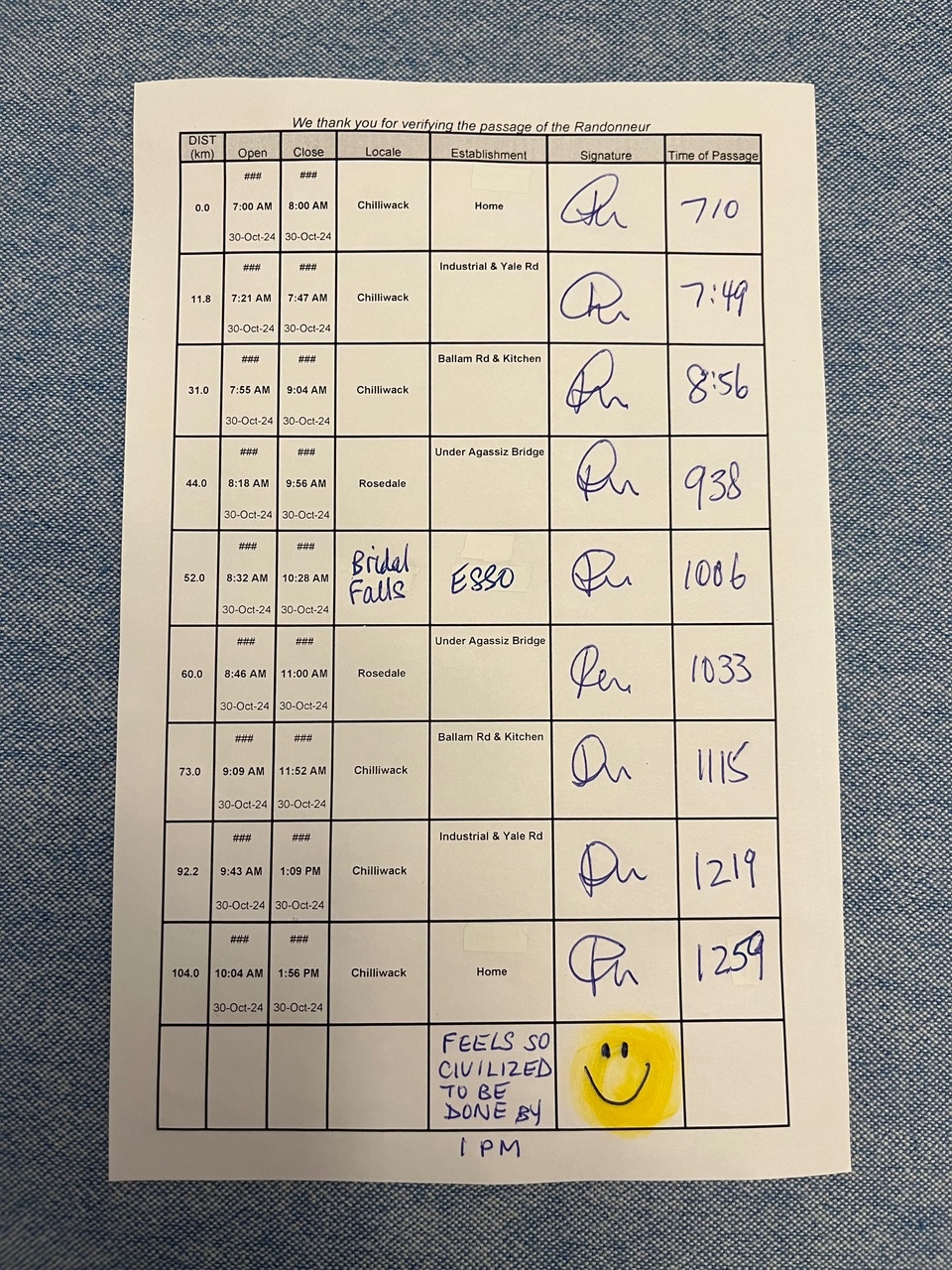 It was an uneventful ride. Just how I like it. When I got to my turnaround at the Bridal Falls Esso, they were redoing the asphalt in their yard. So I didn’t even go in and I just turned around and kept riding... I came across four single lane construction zones that slowed me down. At my last single lane zone, on Chilliwack Mtn Rd, the stoppage was taking too long, and I turned around and went back to Aiken, to then get onto Progress Way. It cost me almost 1.5 km, but I was moving.... : )