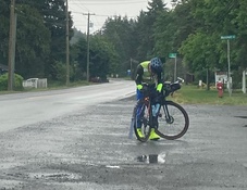 I was tired by the time I got back to Lake Cowichan. The biggest hills of the day were behind me but I was only 200km into the ride. It was going to be a long day. I stopped for a sandwich and then pressed on. There was some easy riding along the lakeshore and through the forest to a turnaround point at a park. Then back to Lake Cowichan. Not long after leaving Lake Cowichan dark clouds rolled in. There was plenty of clear sky after the clouds and I knew the forecast was for a clear night. I figured I was due for some luck. The rain started while I was on the long descent toward Duncan. I didn’t stop to put on rain pants because I thought it was only a shower. I’m descending at about 50km/hr so the rain is stinging my face. Then the shower became a torrential downpour but I kept going. I was getting worried about heading into a cold night with wet clothes, so I eventually stopped at a gas station with a big canopy to put on my rain pants but by then the worst had passed.