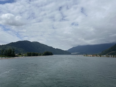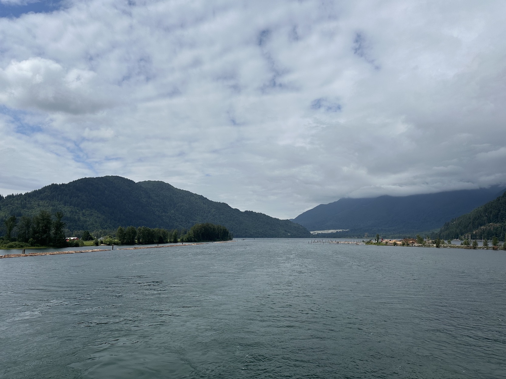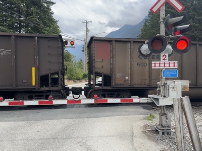 Sunshine Less 400 I was looking forward to this weekend’s 400. Many Randonnneurs say that the 400 is the toughest distance in Randonneuring. There is truth in that but, for me, this ride was one with no pressure. In the longer rides, the faster you ride, the more sleep you get. In shorter rides I put pressure on myself to see how much faster I can be. In this ride, it didn’t matter. All I needed to do was finish within the prescribed 27 hours. Barring serious mechanicals, that wasn’t likely to be a problem. I enjoy riding at night and I had nowhere I needed to be the next morning. We started early in the middle of Vancouver, so it took a couple of hours to clear the city. We started on city streets lined with shops, set against the mountains. From there we went through warehouse districts, quiet residential streets, light industrial and heavy industrial areas before reaching rural roads with forests and farms. It was an almost perfect day for riding. Cloudy, dry and mild in the morning. Some sunshine in the afternoon but not hot. The only negative was the wind. The morning was a typical, light, outflow wind, which meant a small headwind as we rode east. Most of this was on the hilly part of the course so it really didn’t make much difference. It didn’t take long for the day’s inflow wind to build, which meant we had a wonderful tailwind as we continued east to the turnaround at Hope. Needless to say, I made good time to Hope with little effort. Hope was our first control. I stopped for a treat at the Rolling Pin Bakery. I bought a blueberry turnover, which I intended to enjoy while I rode. As I left the bakery, the train barriers went down as a long freight train rumbled through the town. Just long enough to eat my turnover. Delicious.