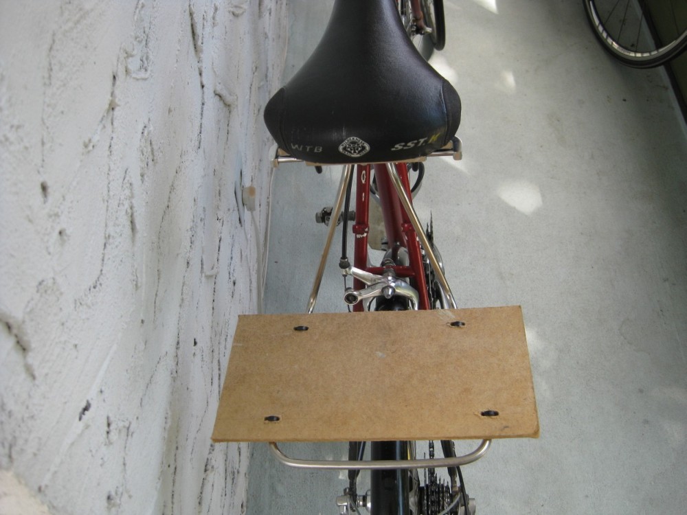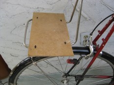 My bag board is 26 cm wide which is just slightly less than the distance between the cloth piping at the edges on the bottom of the Pendle. This sizing keeps the bag centred. The front-to-back size is 14 cm, which is big enough to avoid front or back edge drooping, but small enough to keep your board hidden from other cyclists... No one needs to know that you need bag support assistance.